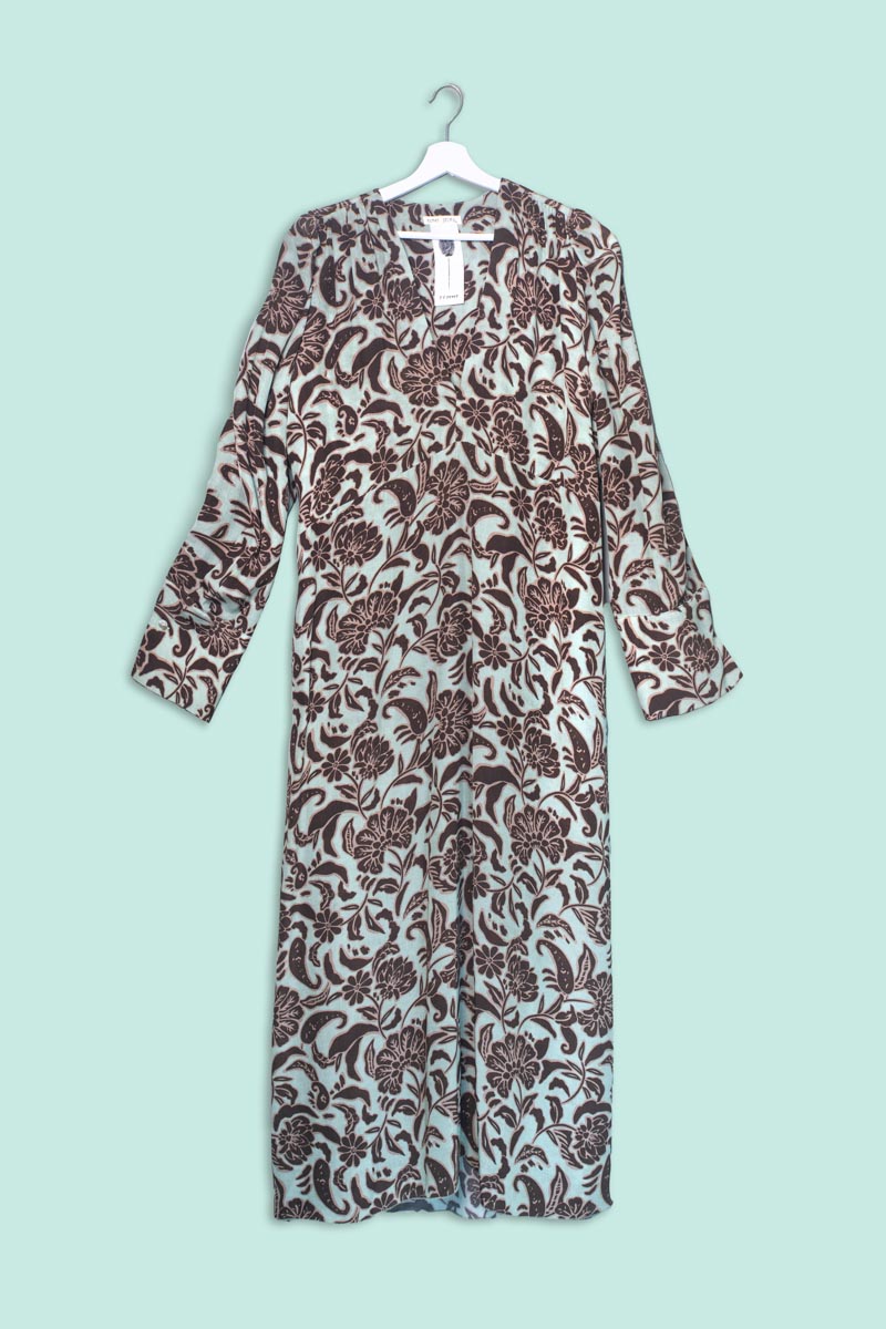 Numero Primo Abito con scollo a V in viscosa fantasia fiori e cashmere magro, domina il marrone colore must have dell’autunno