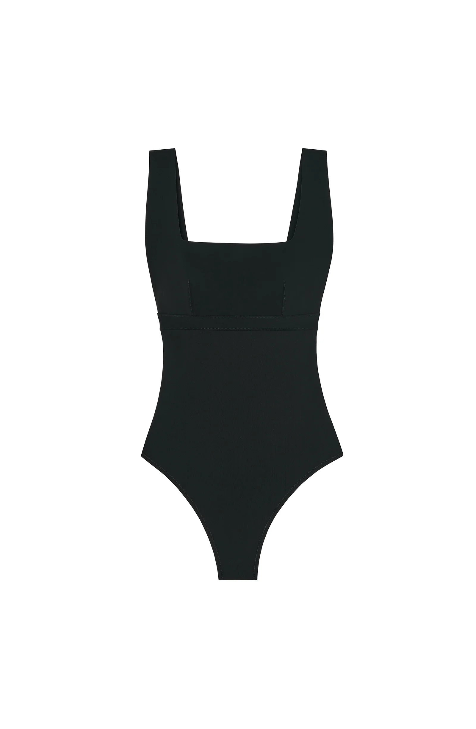 With its square neckline and wide straps, the AGLAE one-piece swimsuit has a slight overall vibe. A drawstring under the bust ties at the back for impeccable support. The open back and thong cut create a sleek, elongated silhouette. The timeless black, always elegant.