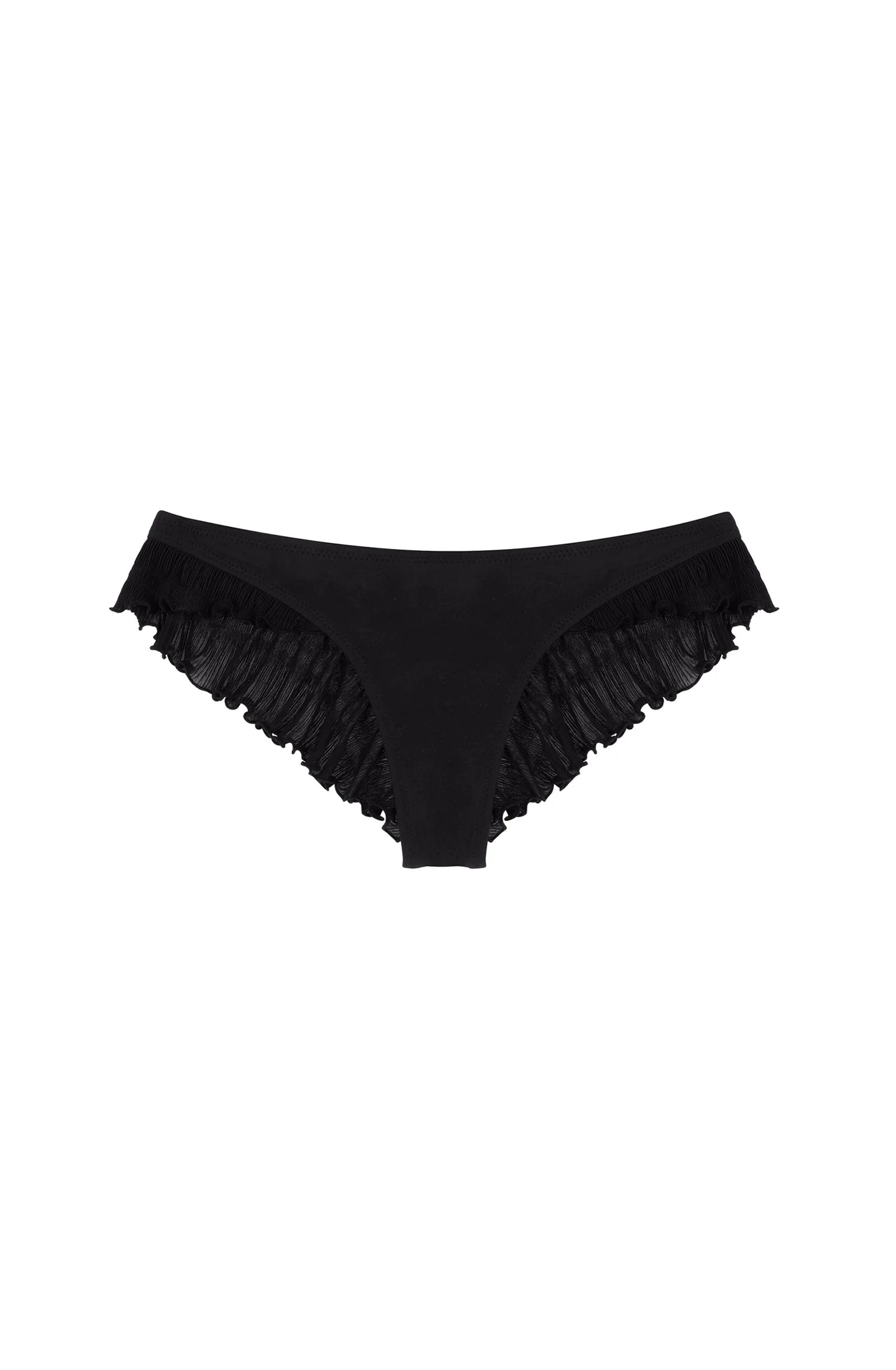 - Bikini thong with wide pleated voile ruffles