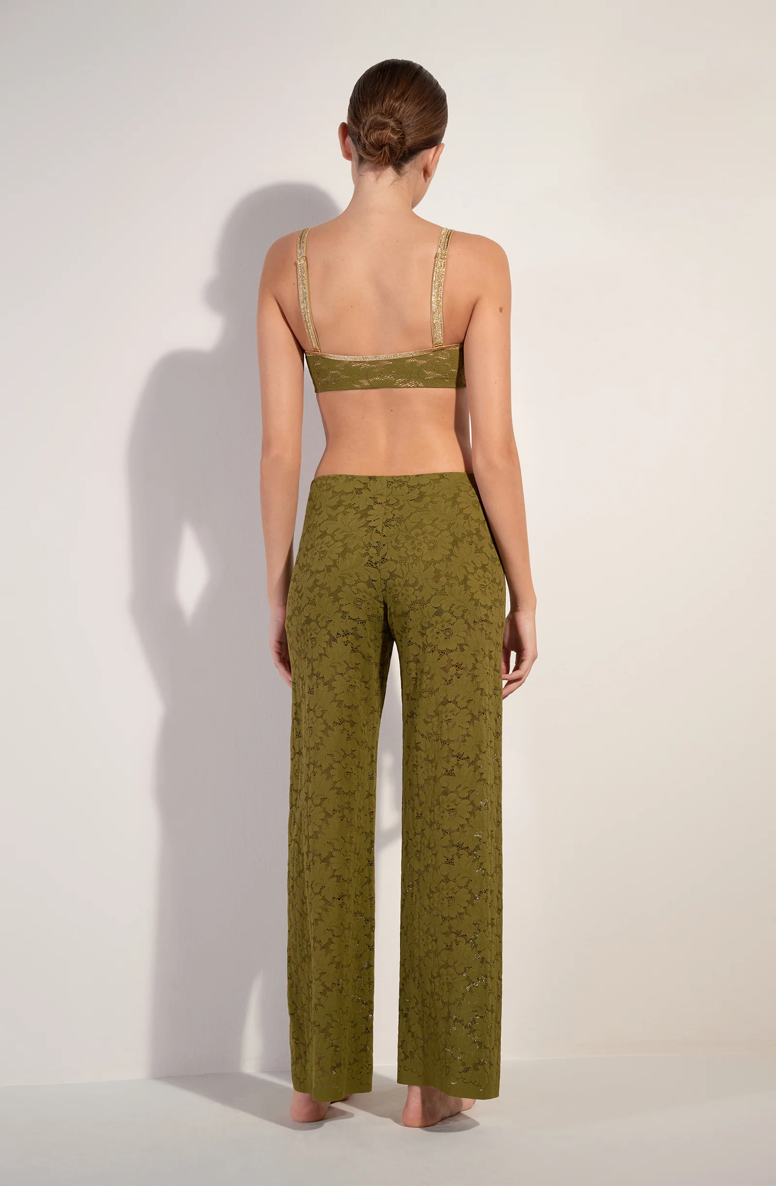 Bandeau bra in French lace Removable pads and side boning Fully lined with nude mesh Finished with a folded golden lurex elastic edge and a soft inner lining Removable double golden straps 97% polyamide, 3% eslastane The studio model is 1.76 m tall and wears size XS (Bust: 83 cm, Waist: 62 cm, Hips: 91 […]