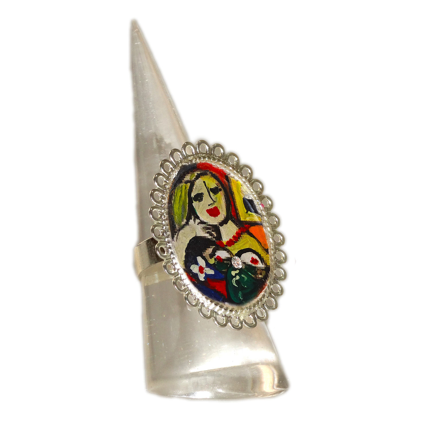 Anello dipinto a mano – Donna che legge di Picasso: Una grande opera del maestro indiscusso del cubismo colora un delizioso anello, brillantino incastonato per catturare la luce.