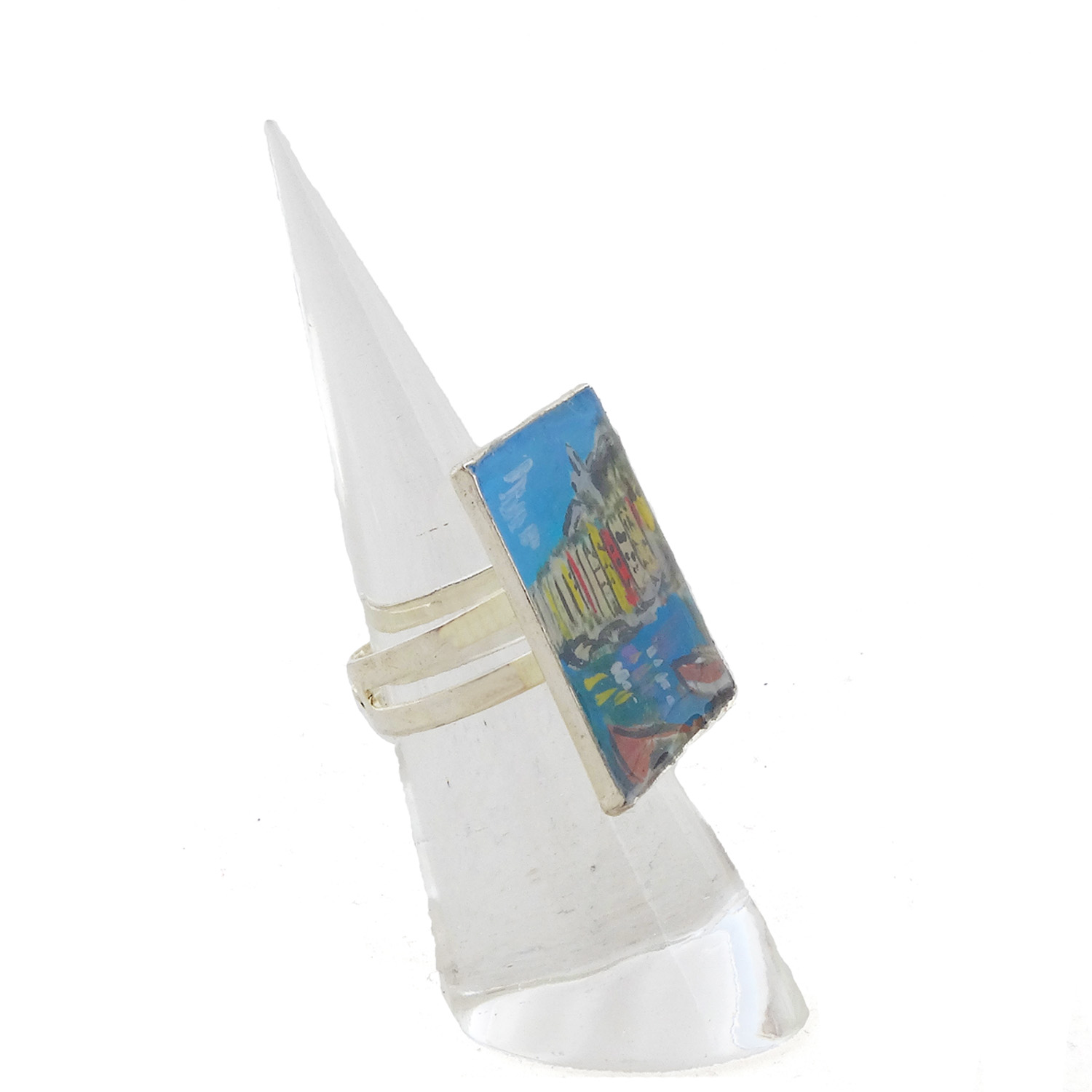 Anello con fascetta regolabile Forma: Quadrata Toni: Color argento Materiale: Metallo – Nichel free Protezione: Resina spessa effetto vetro per proteggere il dipinto
