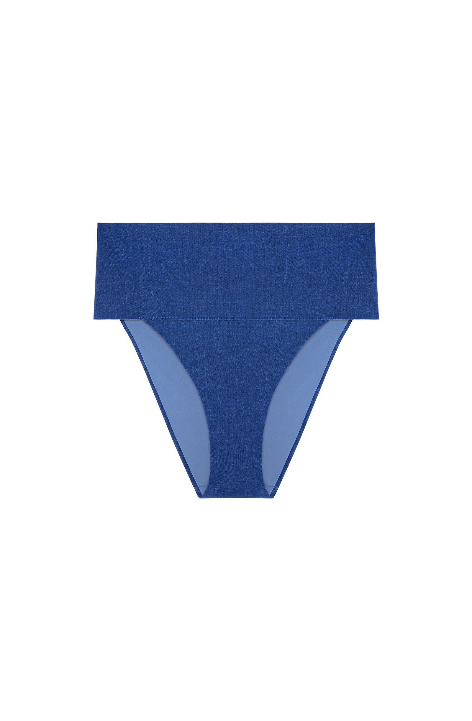 - Straight high-waisted bikini bottoms with a wide Bonded fold-over waistband