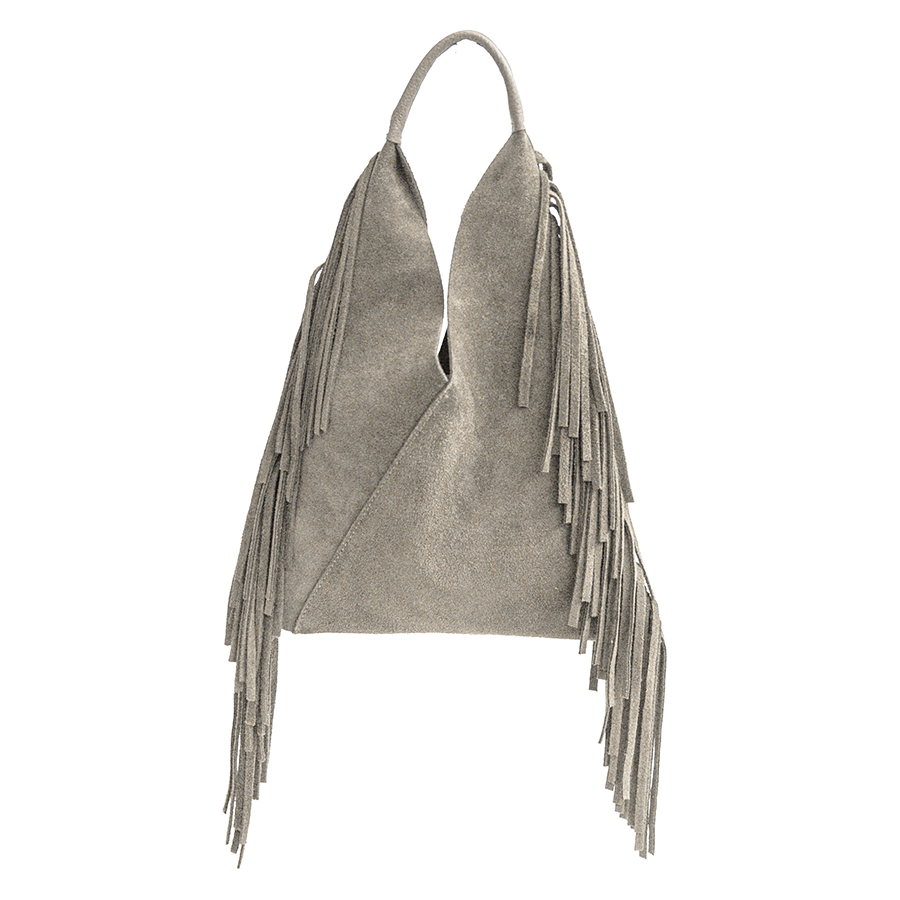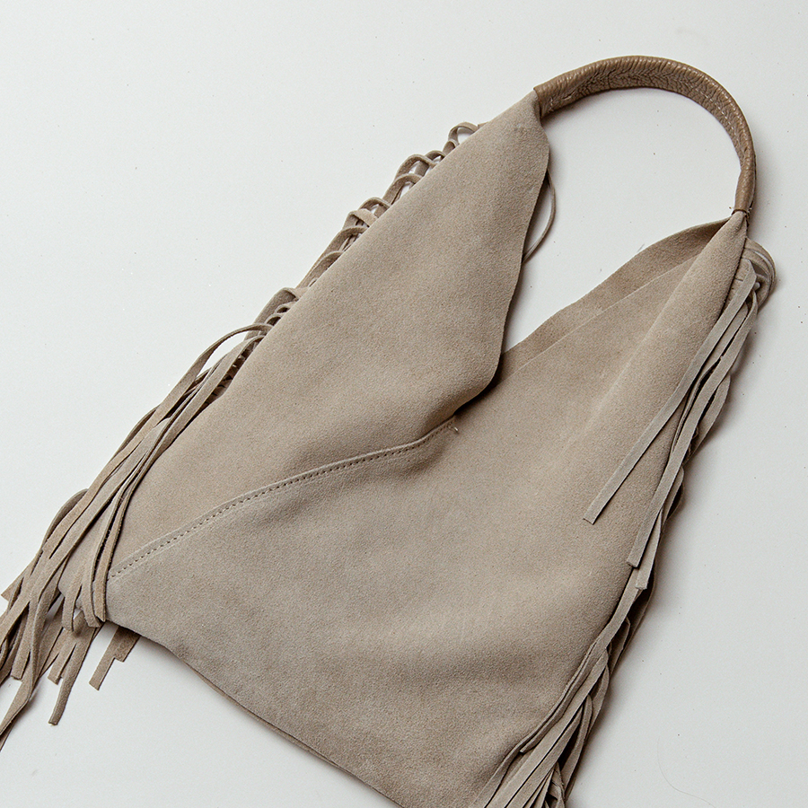 ARIZONA – Sacca con frange in camoscio sabbia