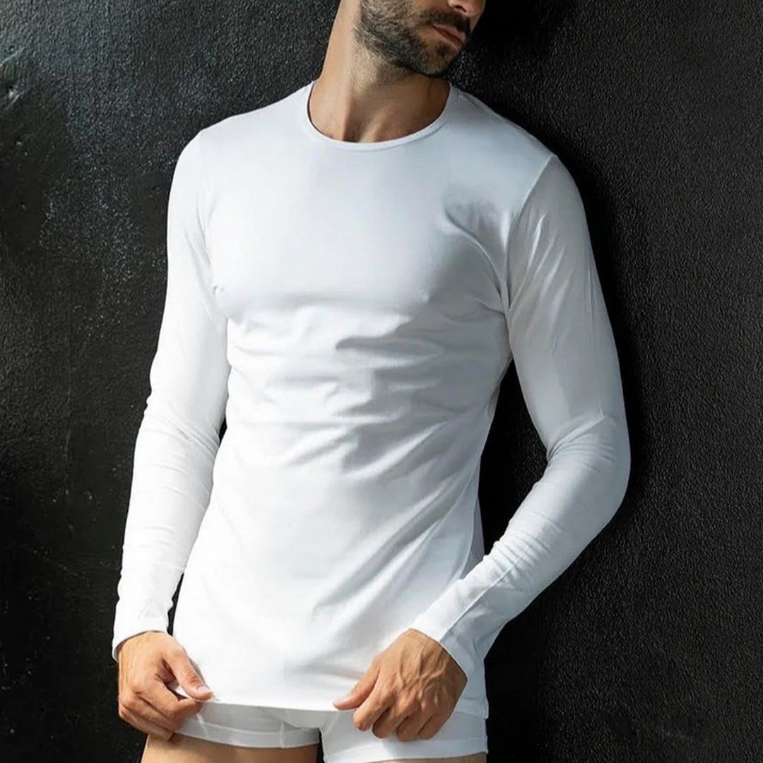 Maglia uomo a manica lunga in tessuto elasticizzato, ideale per uso quotidiano e per chi cerca comfort e libertà di movimento.