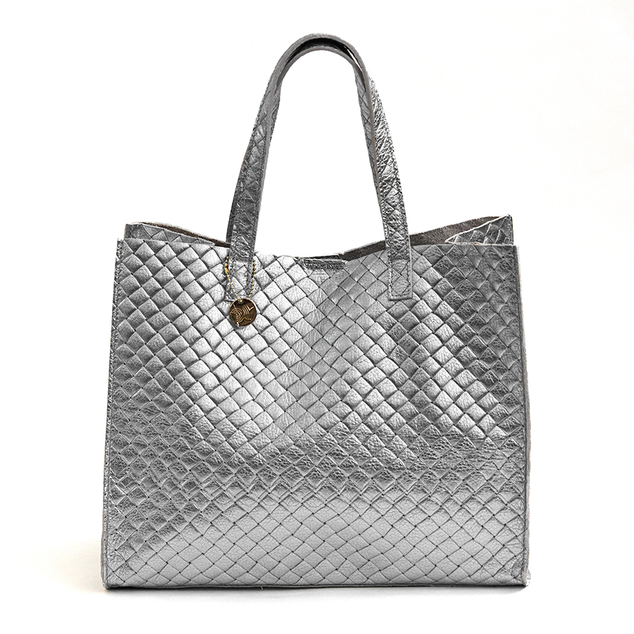 BALI BIG – Borsa in pelle laminata stampa intreccio silver