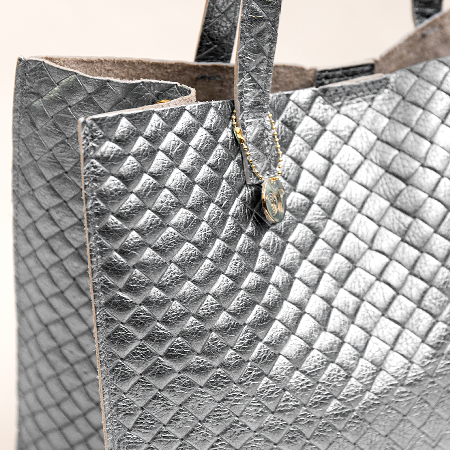 BALI – Borsa in pelle laminata stampa intreccio silver