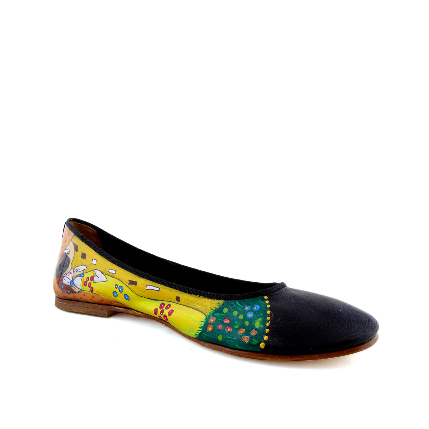 Ballerine dipinte a mano – Il bacio di Klimt: Il bacio è probabilmente il quadro più famoso di Gustav Klimt, ed è proposto da Arte Lisanti su meravigliose ballerine dipinte a mano che ne esaltano le varie gradazioni dell’oro. Per un outfit elegante e decisamente romantico. L’oro è in rilievo!