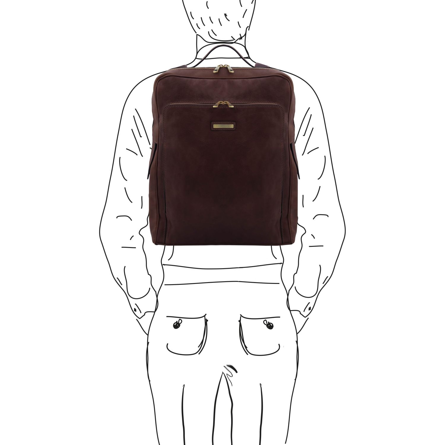 Lo zaino Bangkok in pelle testa di moro di Tuscany Leather è realizzato in cuoio toscano di alta qualità. Dotato di cuciture robuste, tasche multiple e una zip resistente, offre spazio e funzionalità. Puoi portarlo comodamente a spalla, ideale per trasportare il tuo computer e altri oggetti essenziali.