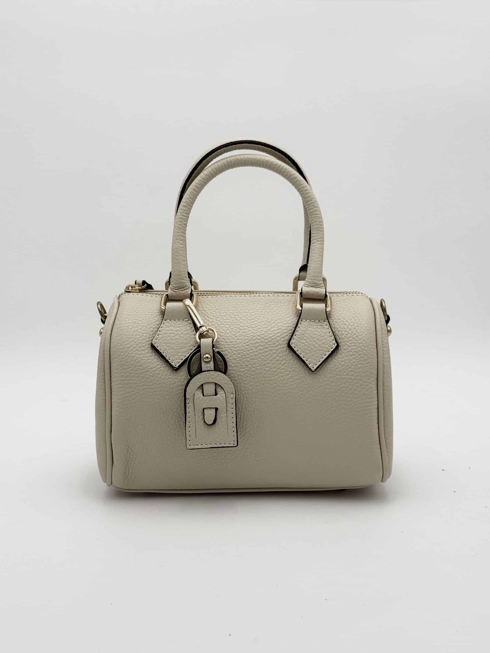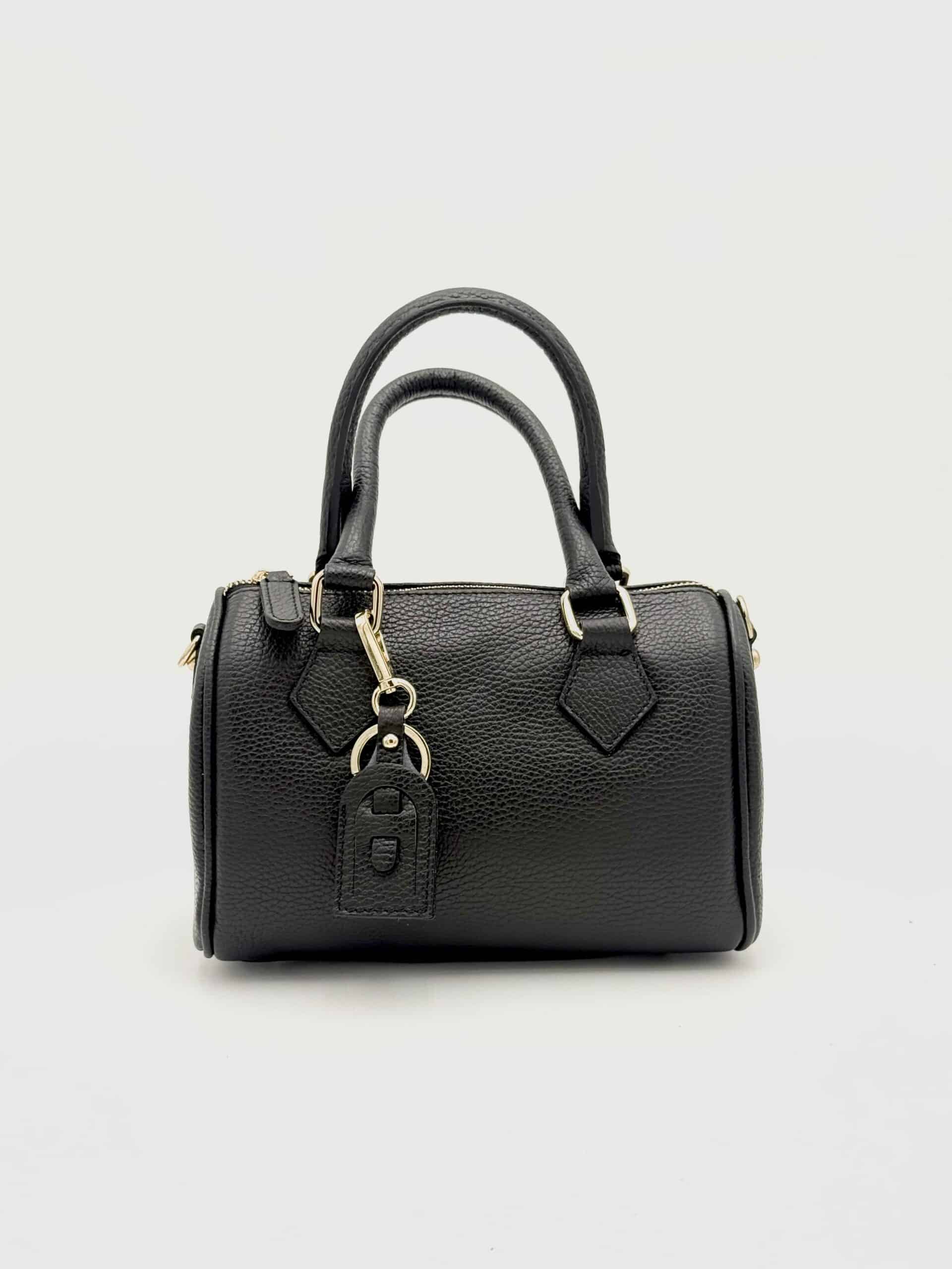 Questo modello a bauletto compatto è realizzato in pregiata pelle di vitello conciata al vegetale con finitura martellata, una lavorazione che dona alla superficie una grana elegante e tridimensionale, oltre a garantire maggiore resistenza e durata nel tempo.