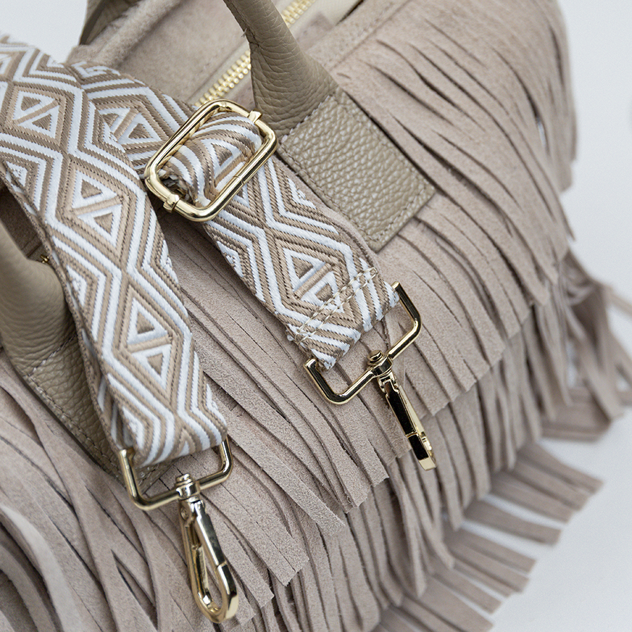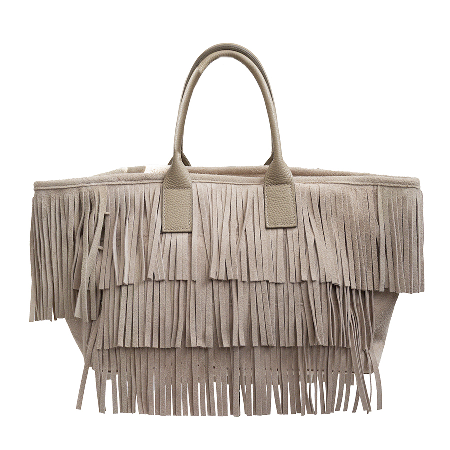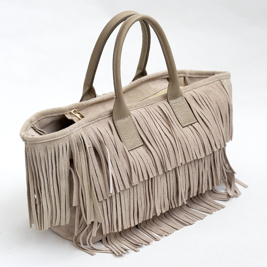 ARIZONA – Sacca con frange in camoscio sabbia
