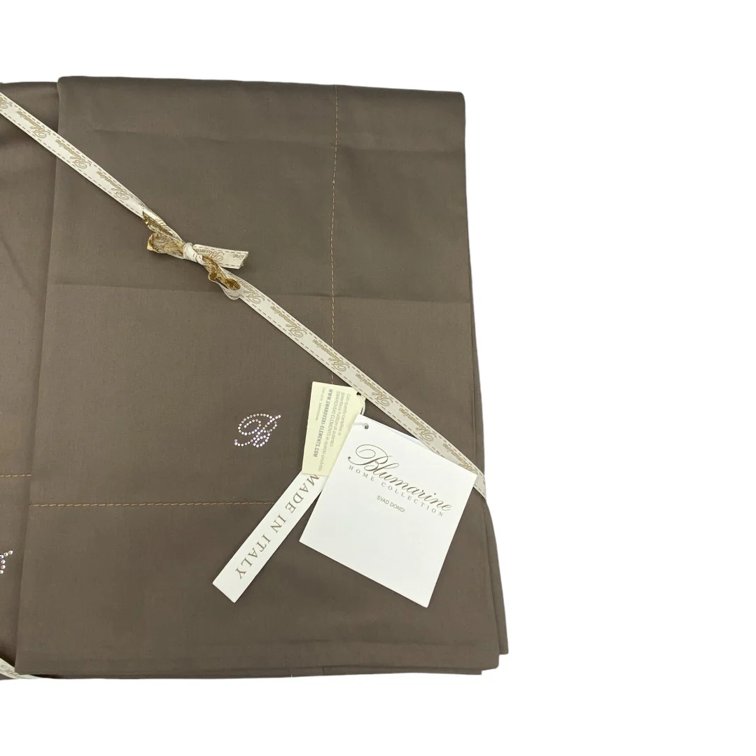 Lenzuola matrimoniale in puro raso di cotone tinta unita, federe a 3 volani decorate con logo Blumarine in cristalli Swarovski, lenzuolo sotto con angoli. Tantissime varianti colore disponibili, dai delicati toni dei colori cipria e burro, ai più forti dei colori cera, erica e roccia. Set 4 pezzi formato da: 1 lenzuolo sopra 250×290 cm […]