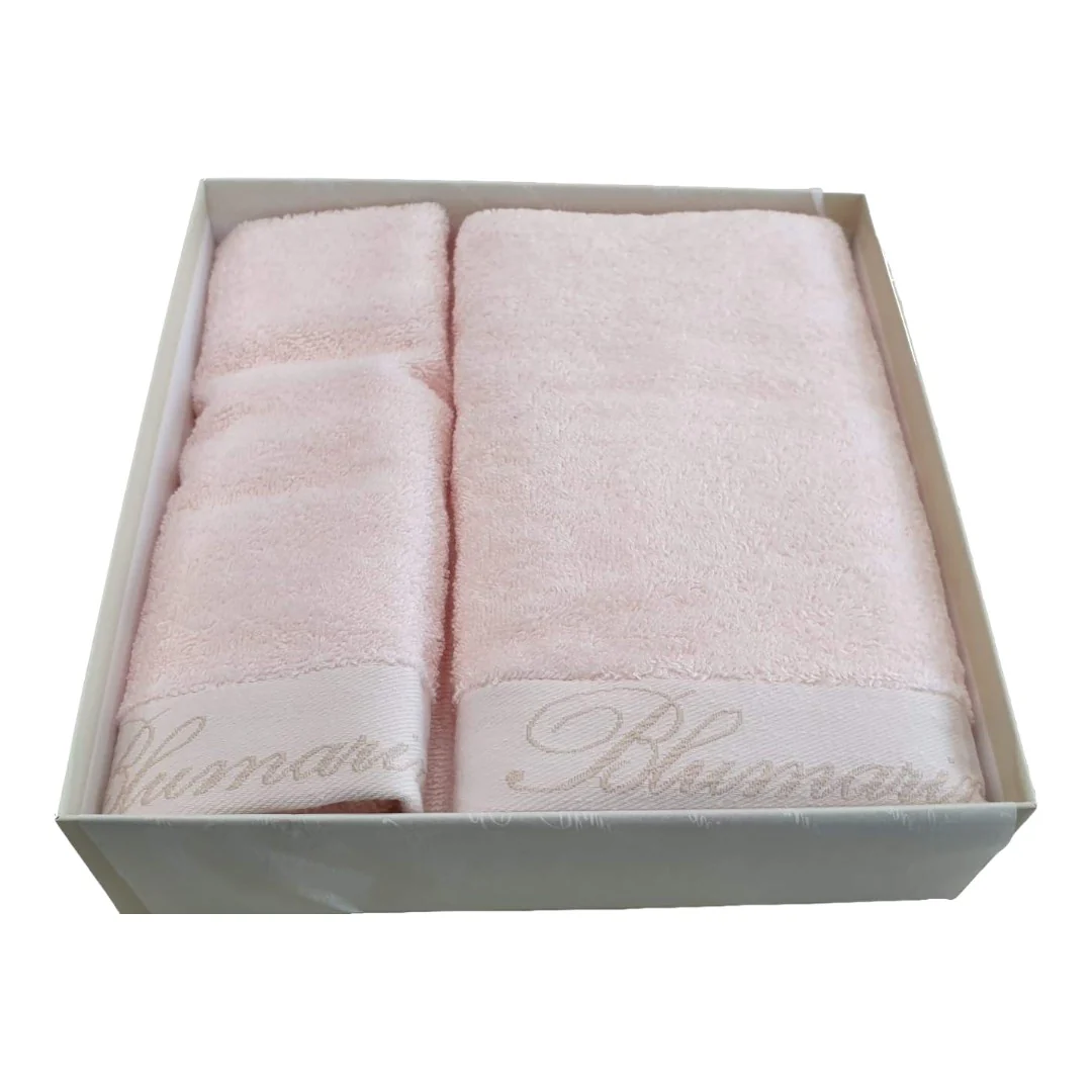 Blumarine Coppia 1+1 di asciugamani in spugna di cotone Spa Cipria