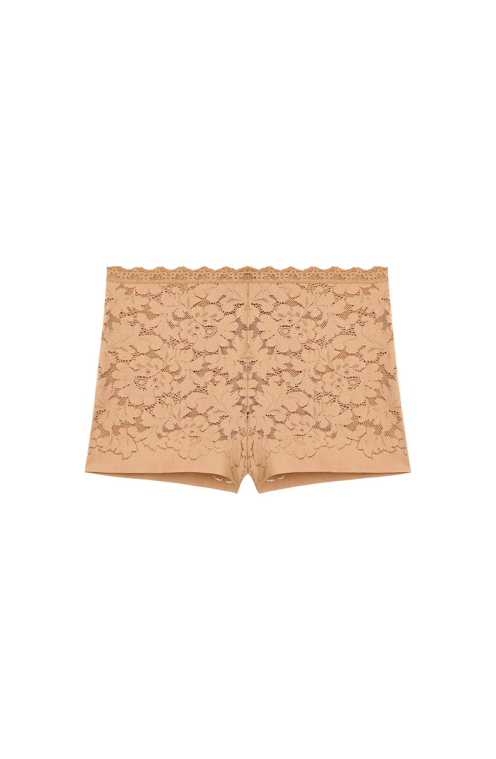 Made of stretch lace, the boyshorts BOBBY are a discreet basic piece that is very pleasant to wear. Their high waist is adorned with a delicate scalloped finish. Biscuit colour, a soft neutral beige that is invisible under your clothes.