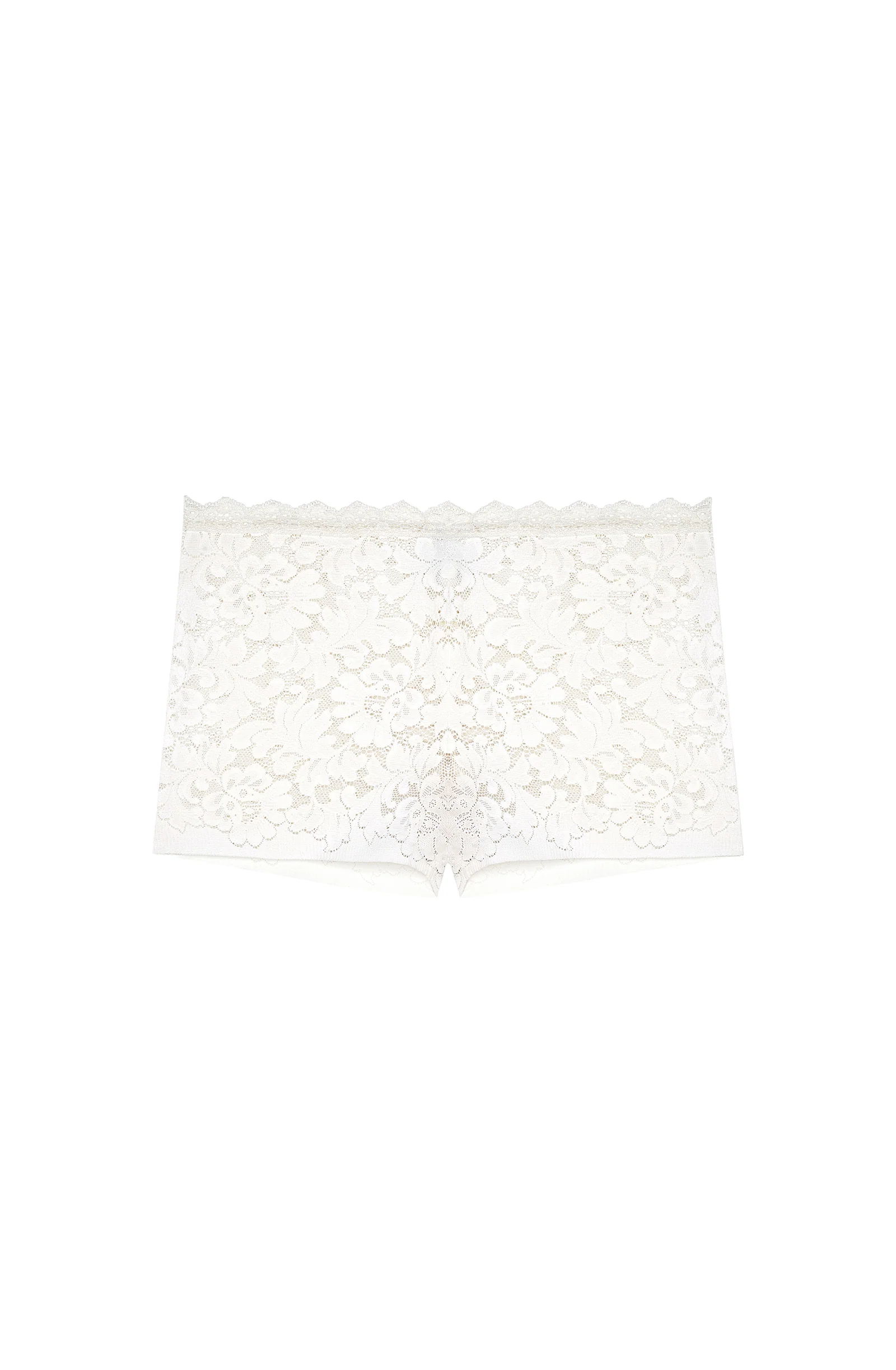 Made of stretch lace, the boyshorts BOBBY are a discreet basic piece that is very pleasant to wear. Their high waist is adorned with a delicate scalloped finish. A warm white colour inspired by sea foam.