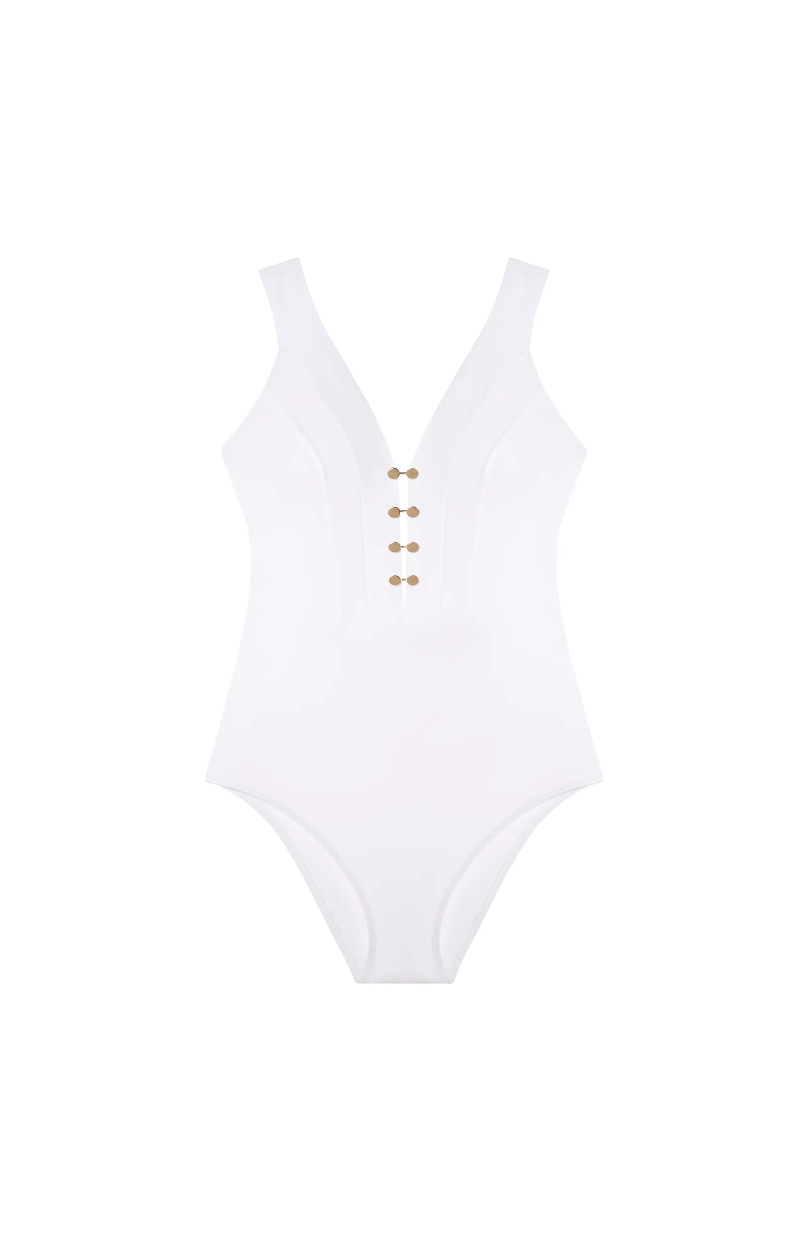BONNIE reinvents the racing swimsuit by giving it a new smart and feminine impulse. Resolutely elegant, this model is adorned with an extra tie to replace cufflink jewels. Its deep V- back and the seam underlining the waist bring a refined and original touch. A pure and delicate white that brightens the complexion.