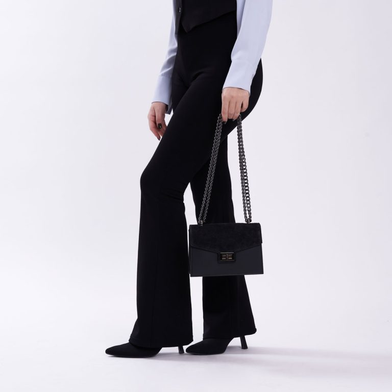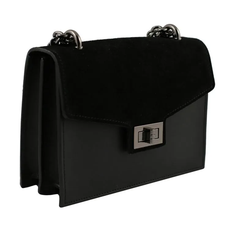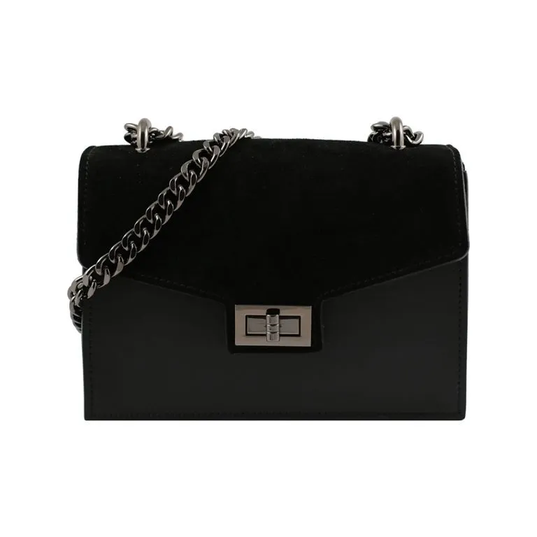 Borsa a spalla in pelle con catena MILANO – Nero