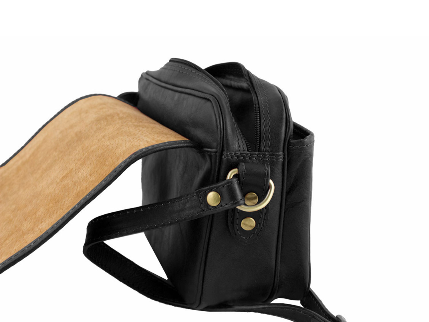 Esterni: Costruzione semi rigida – Tracolla fissa regolabile – Chiusura con bottone automatico e zip – Vera pelle Interni: Fodera in poliestere – Tasca interna con zip – 2 scomparti – tasche interne Dimensioni: 25 cm x 18 cm x 10 cm