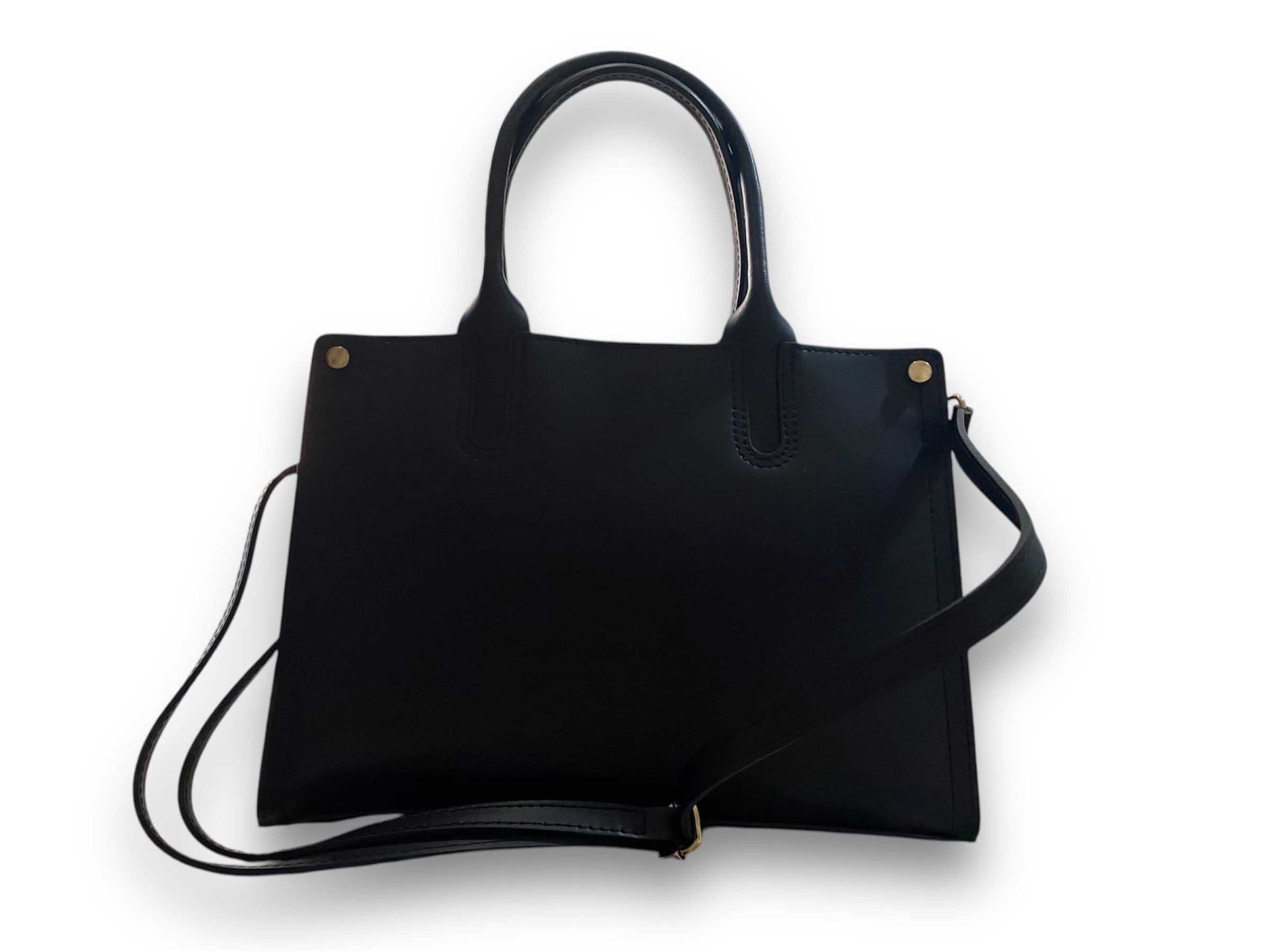 - Esterni: Costruzione rigida – Chiusura con Zip – Accessori in metallo color oro – Due tasche (anteriore e posteriore) chiuse da bottone automatico, colore base nero.