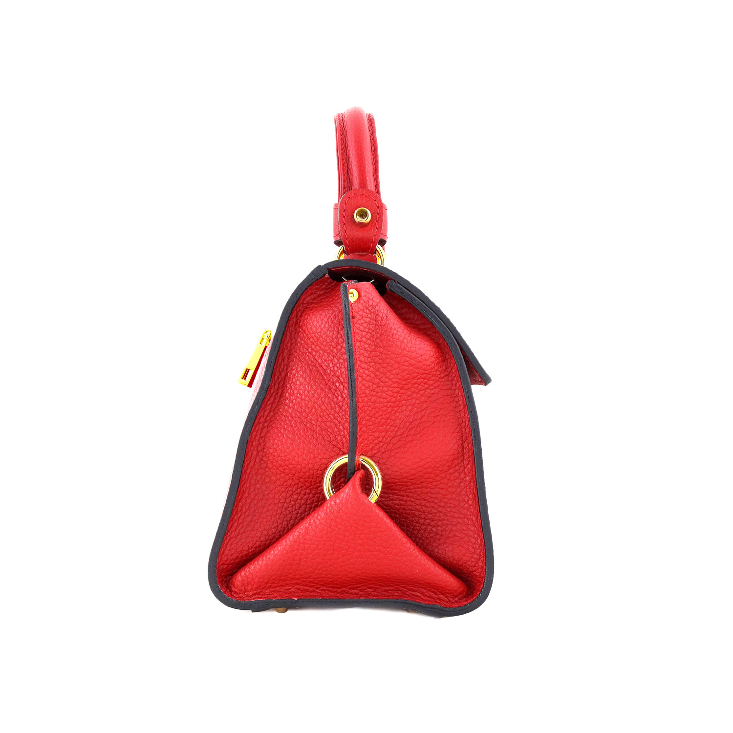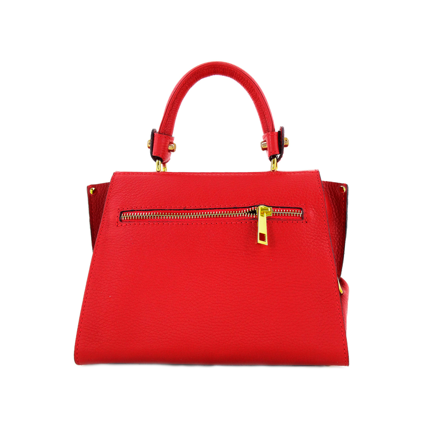 Esterni: Costruzione semi-rigida – Chiusura con fibbia – Accessori in metallo color oro Interni: Tasca portacellulare – Tasca interna con zip – Unico scomparto – Fodera in poliestere Accessori: Tracolla montabile ad esigenza Dimensioni: 23 cm x 18,5 cm x 12 cm (altezza manico 10 cm)