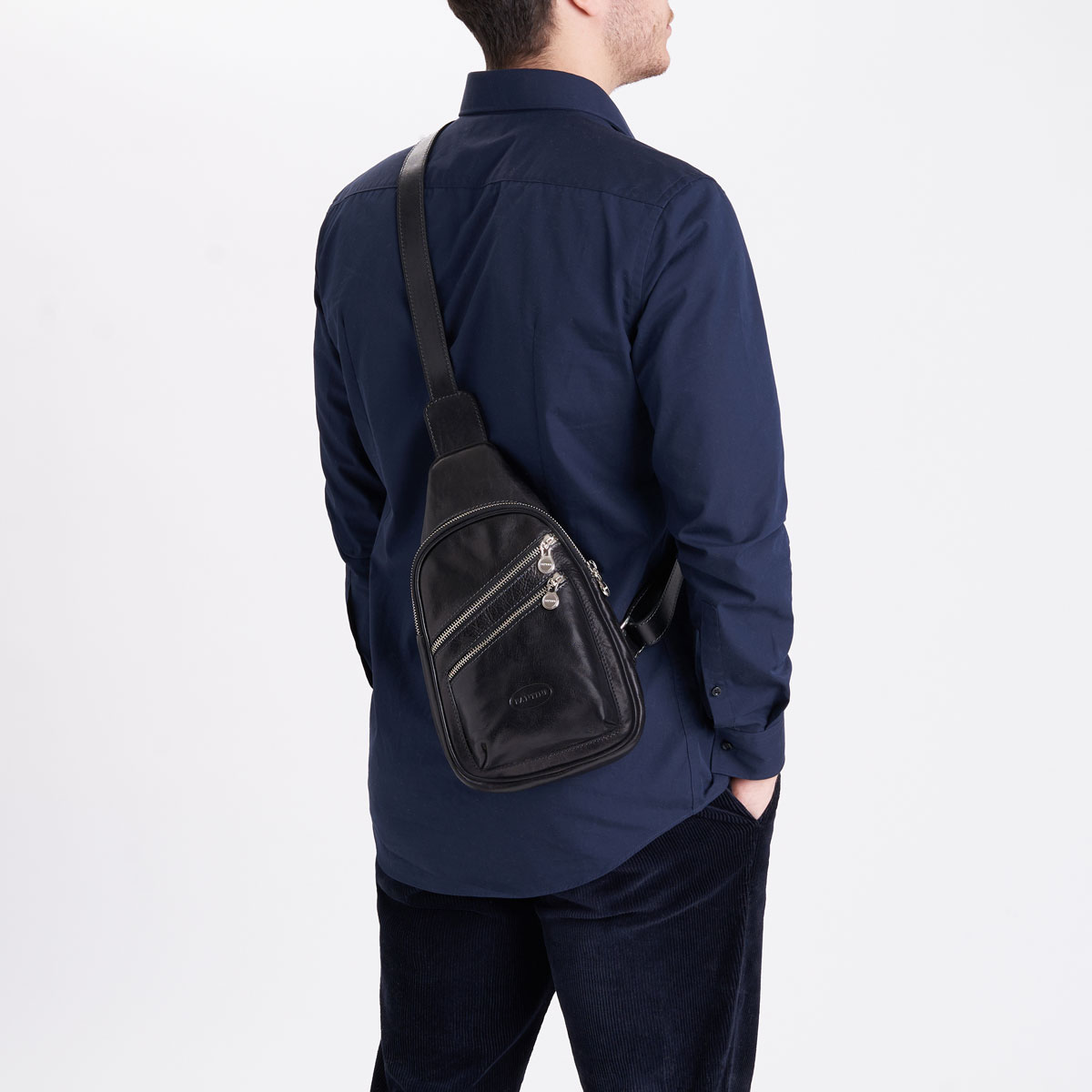 Borsello a tracolla in cuoio toscano VESPUCCI – Nero