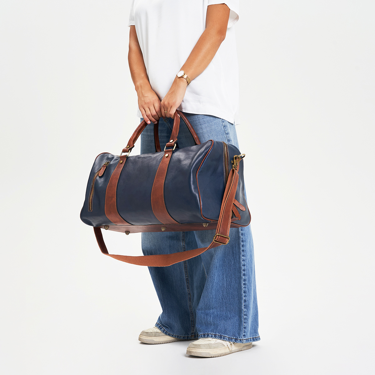 Borsone da viaggio vintage in cuoio toscano – Blu