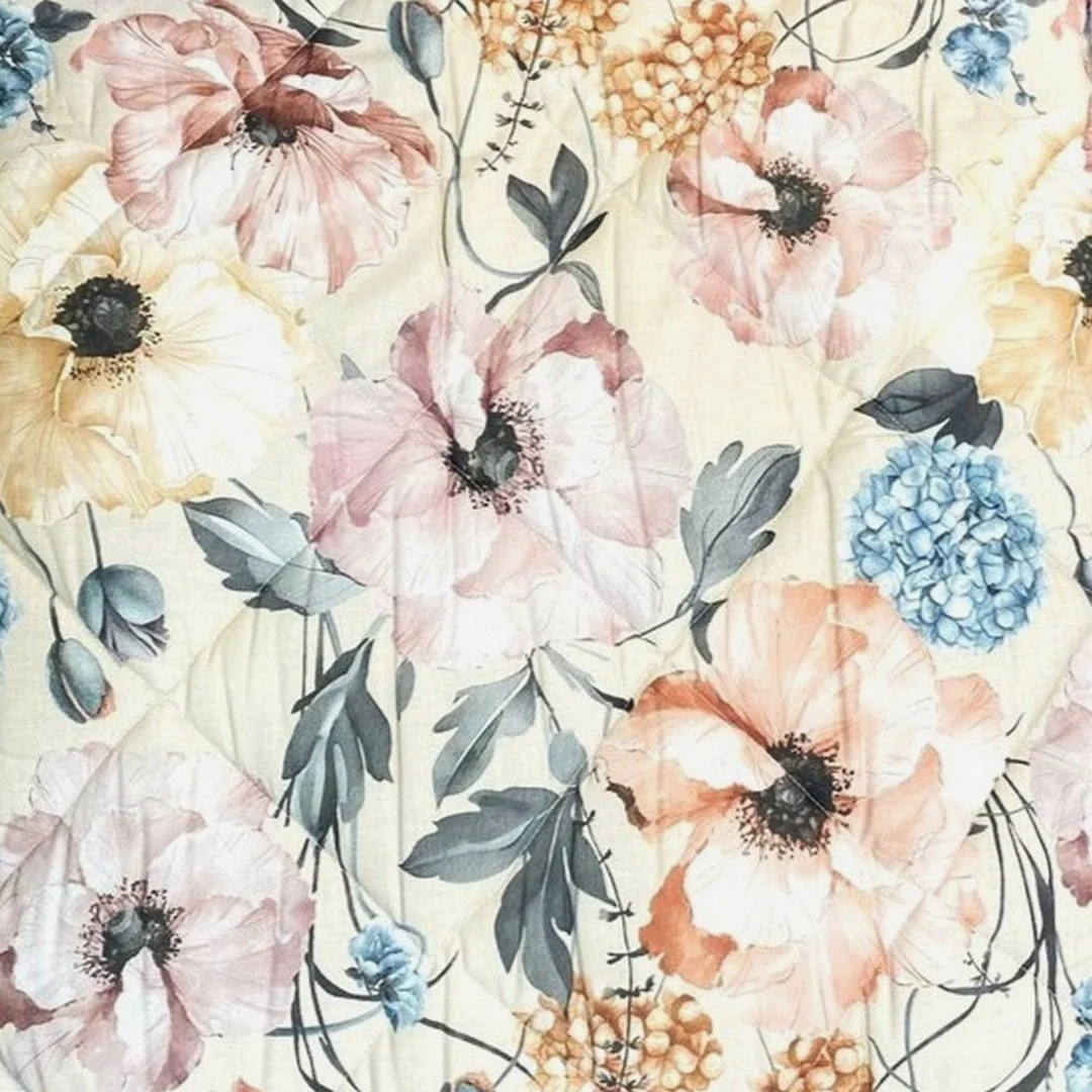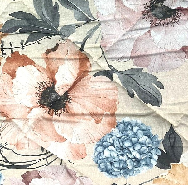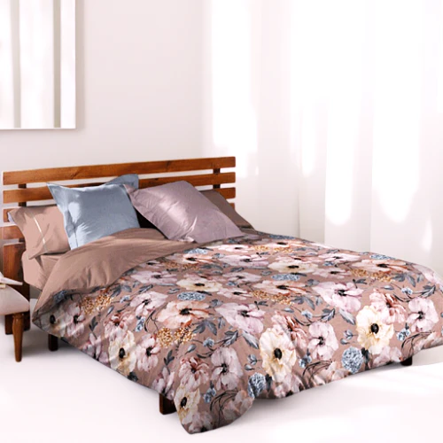 La delicata fantasia floreale conferisce alla camera da letto un tocco romantico e raffinato, ideale per valorizzare qualsiasi ambiente.