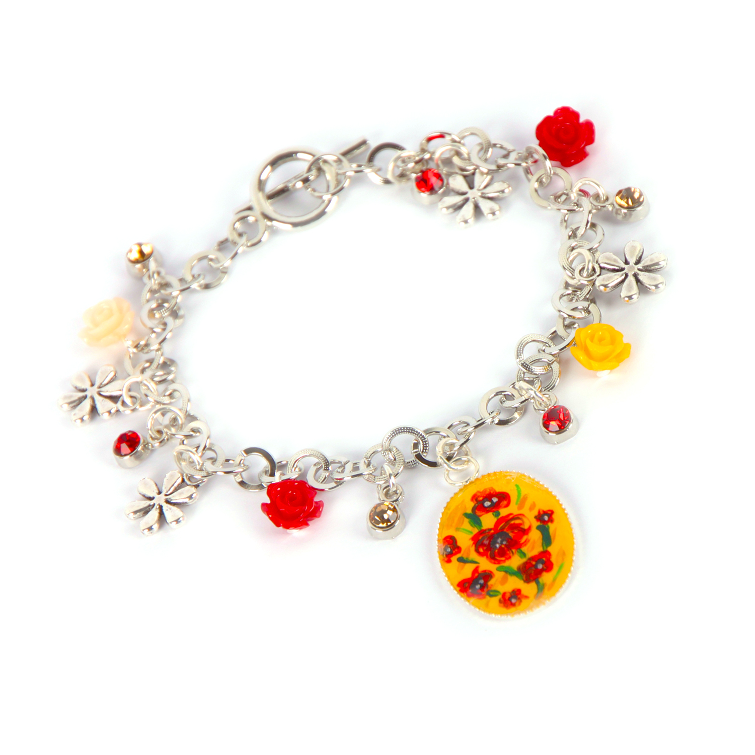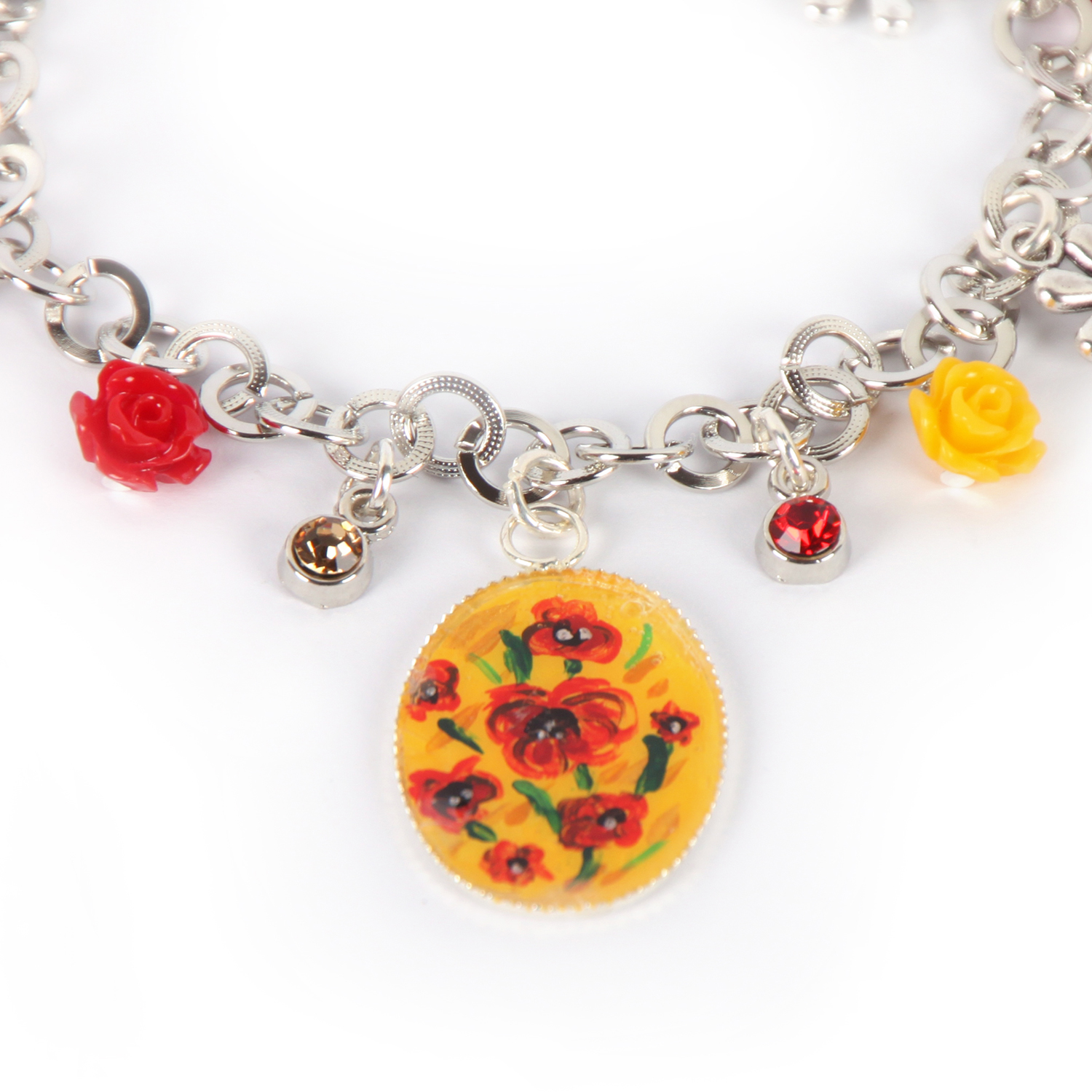 Bracciale dipinto a mano – Blossom flowers: Piccole pennellate per questo ciondolo cammeo decorato a mano con boccioli delicati in una esplosioni di colori dalle nuance vitaminiche, che riprendono le pennellate di un pittore impressionista.