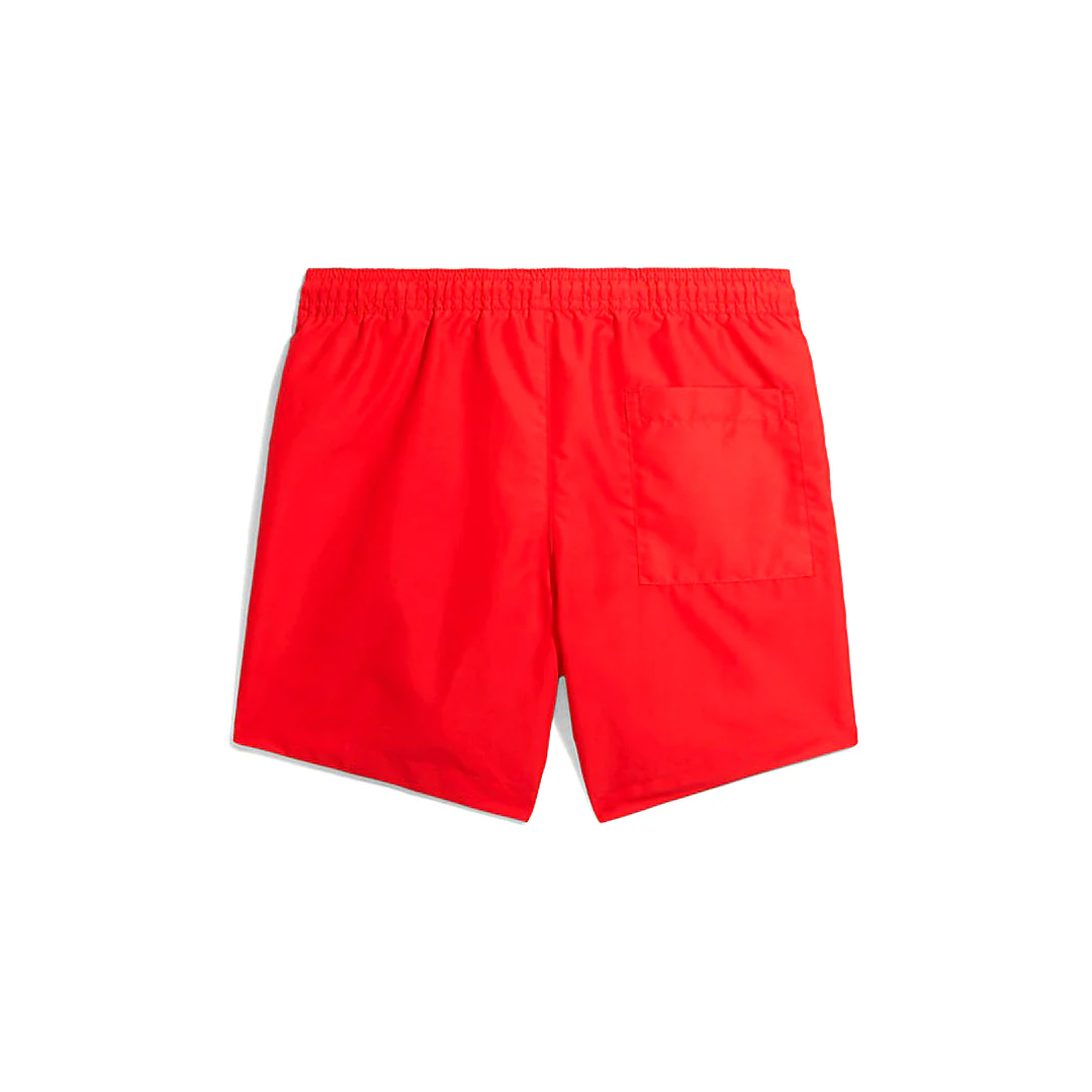 Costume Calvin Klein Swimwear Medium Drawstring da bambino in tessuto di poliestere riciclato, idroreppellente ad asciugatura rapida, modello boxer da mare, con mutandina interna in rete, elastico e coulisse in vita, tasche laterali a filo, macro logo lettering in stampa gommata a contrasto colore su una gamba e tasca posteriore a filo con velcro a strappo coperto