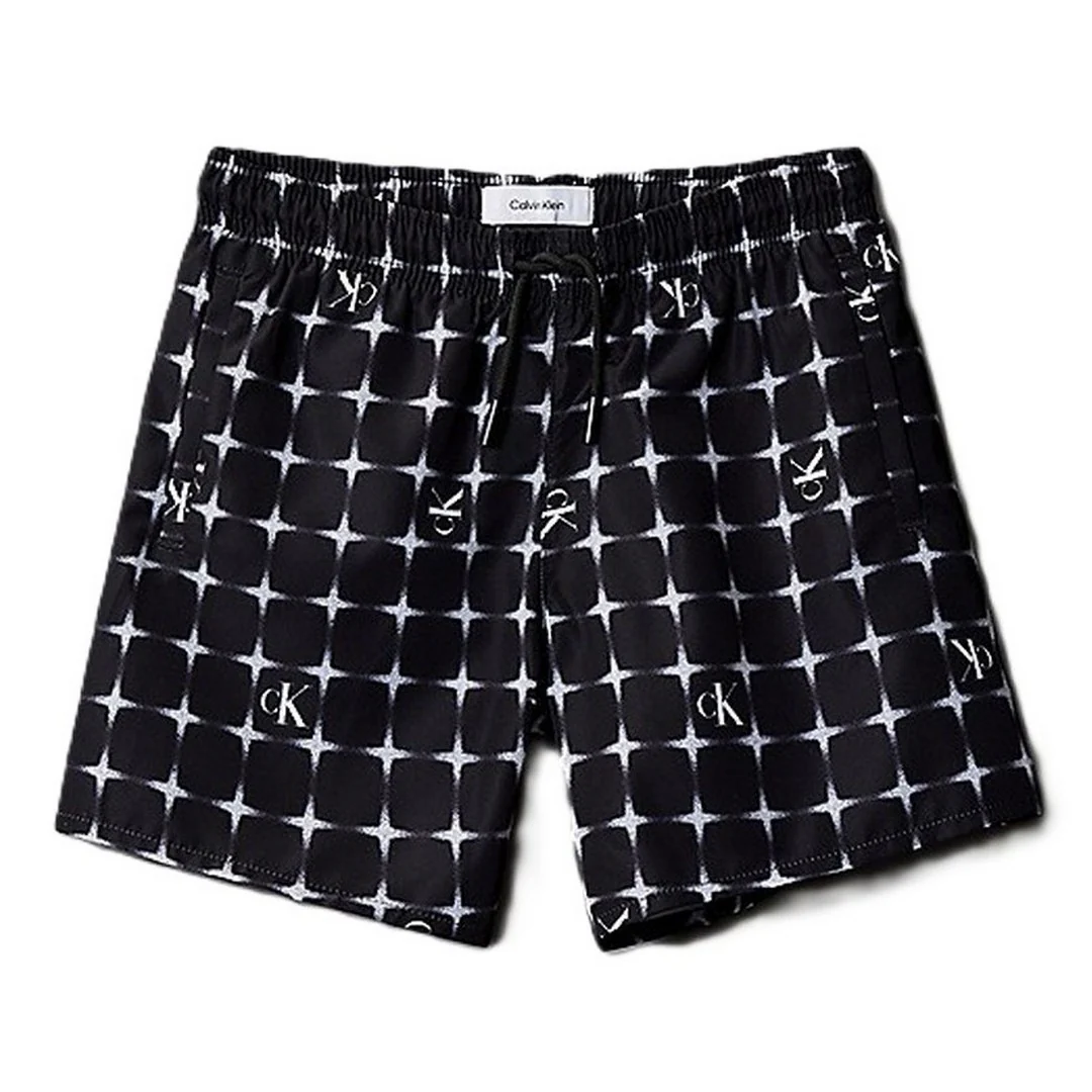 Calvin Klein Pantaloncino Mare Bambino Diffused Logo Grid Black Aop – KV0KV00062
