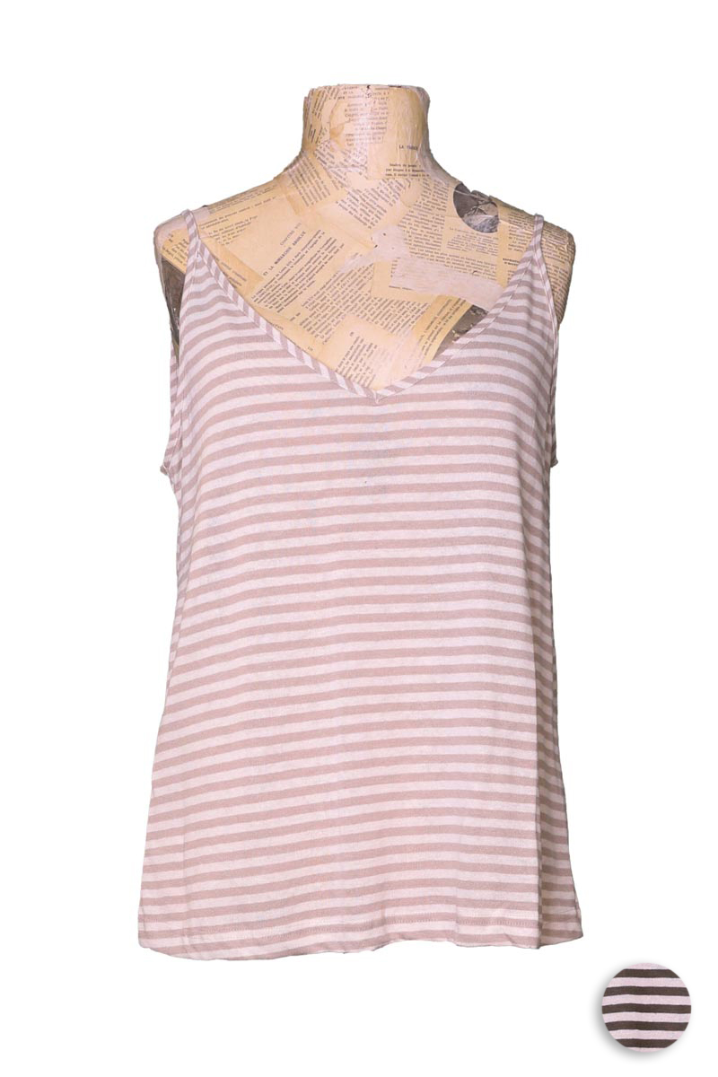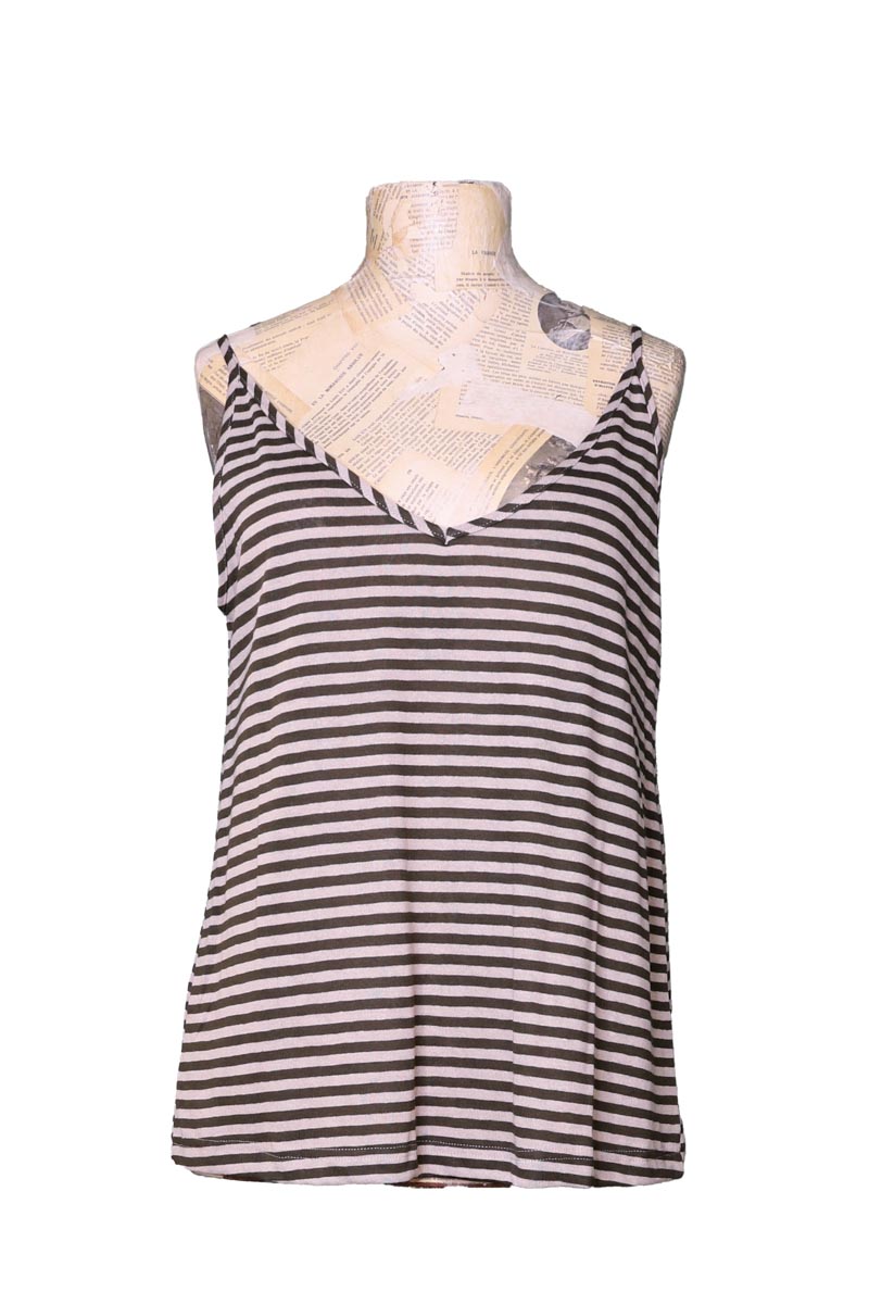 Canotta a Righe Svasata in Viscosa e Lino Mama B