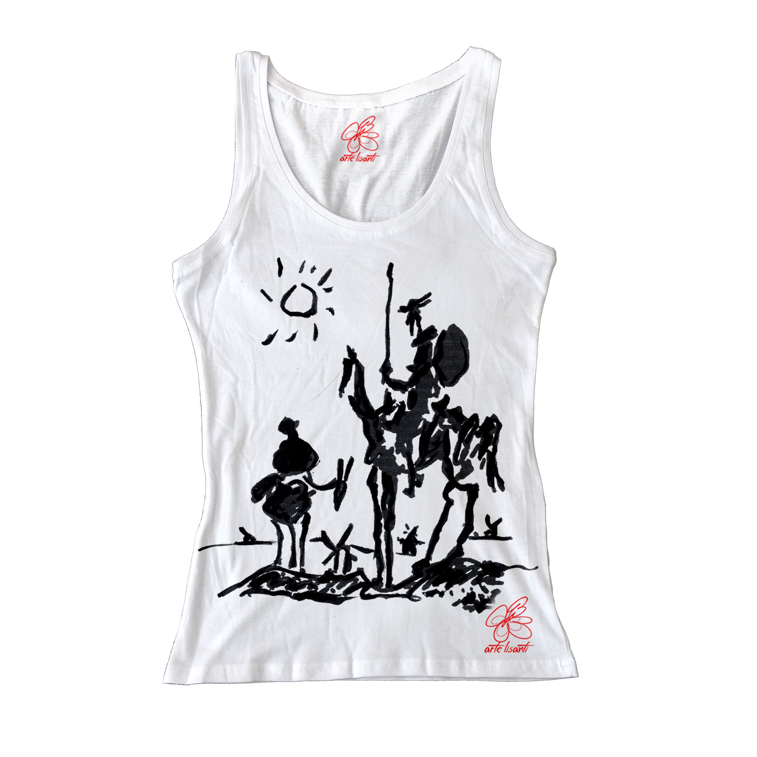 Canotta dipinta a mano – Don Chisciotte della Mancia di Picasso: Grandi pennellate per questo delizioso accessorio che ritrae il Don Chisciotte della Mancia del celebre Pablo Picasso. Per non passare inosservate!