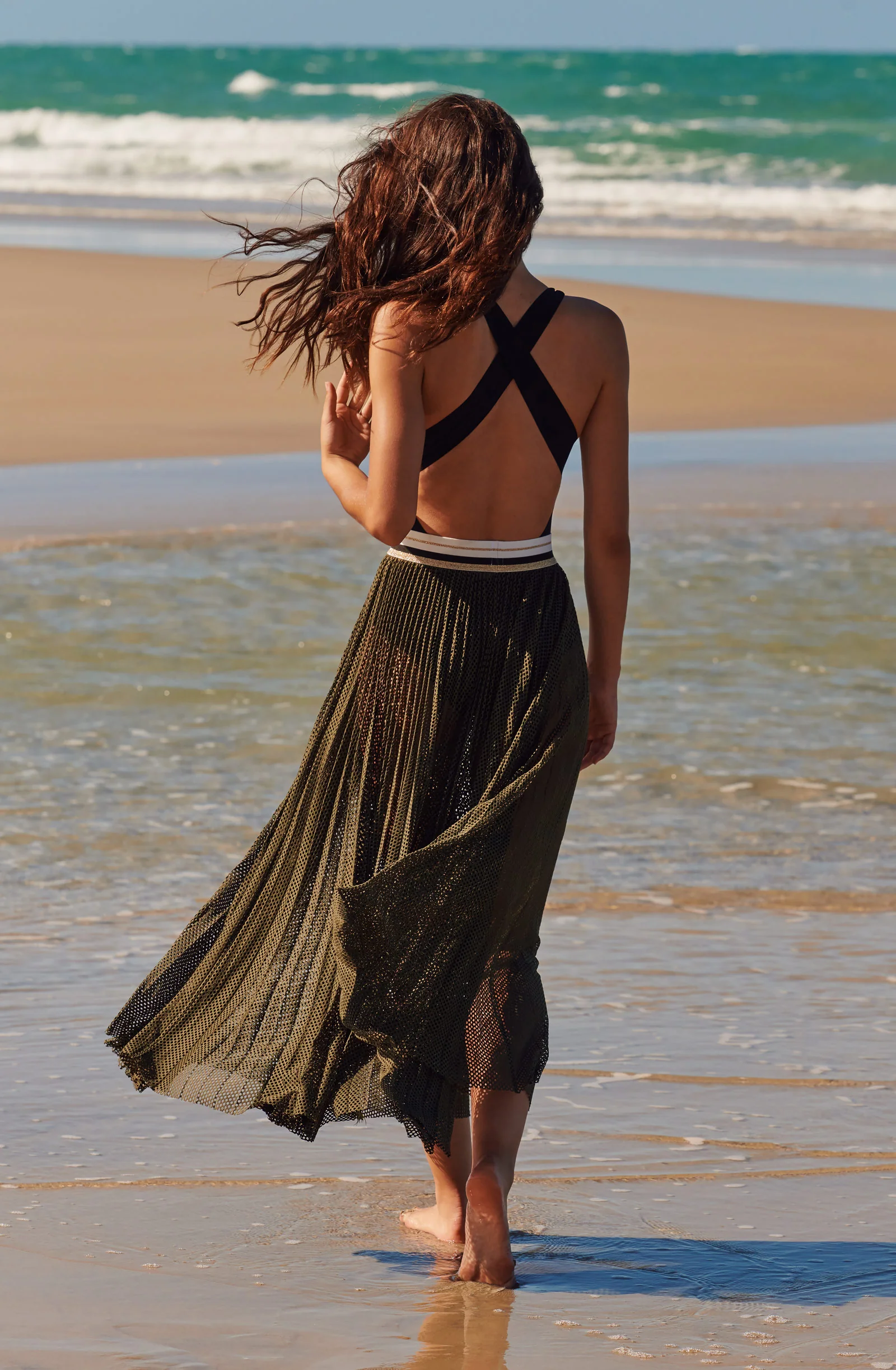 Between the bodysuit and the swimsuit, the one-piece CAPRI is a must have. It provides comfort and support, and its deep draped cups enhance all breasts. Smart and sportswear, this racerback swimsuit with a sleek and dynamic shape slims the silhouette and highlights the curves. Timeless and always elegant, the colour black enhances all body types.