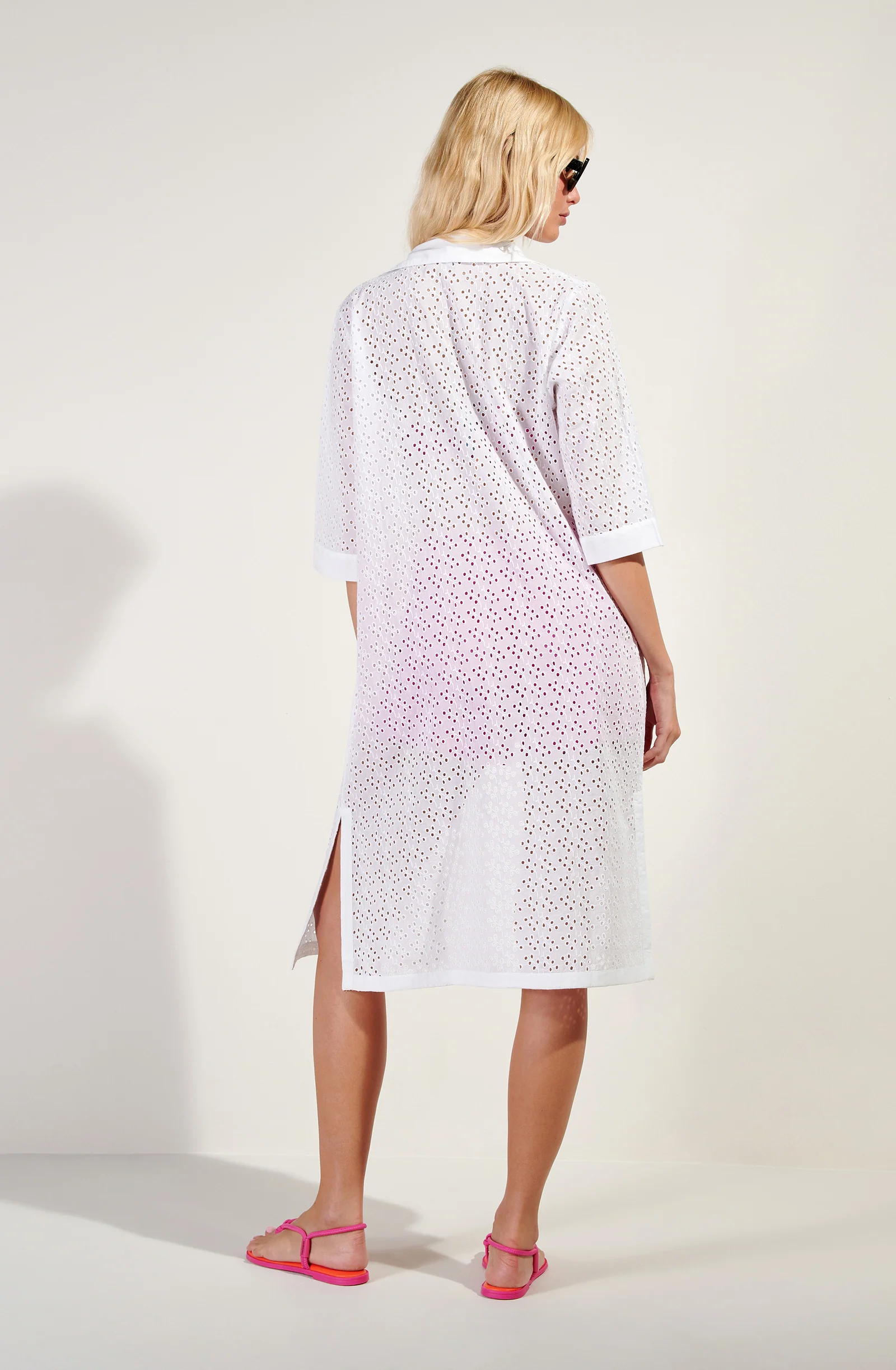 With its shirt-dress cut and broderie anglaise, the CAPU dress covers the silhouette with delicacy while allowing the body freedom of movement. Pure and delicate, white brightens the complexion.