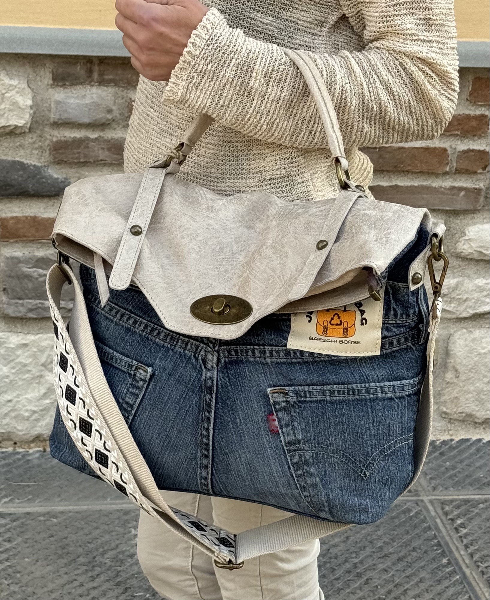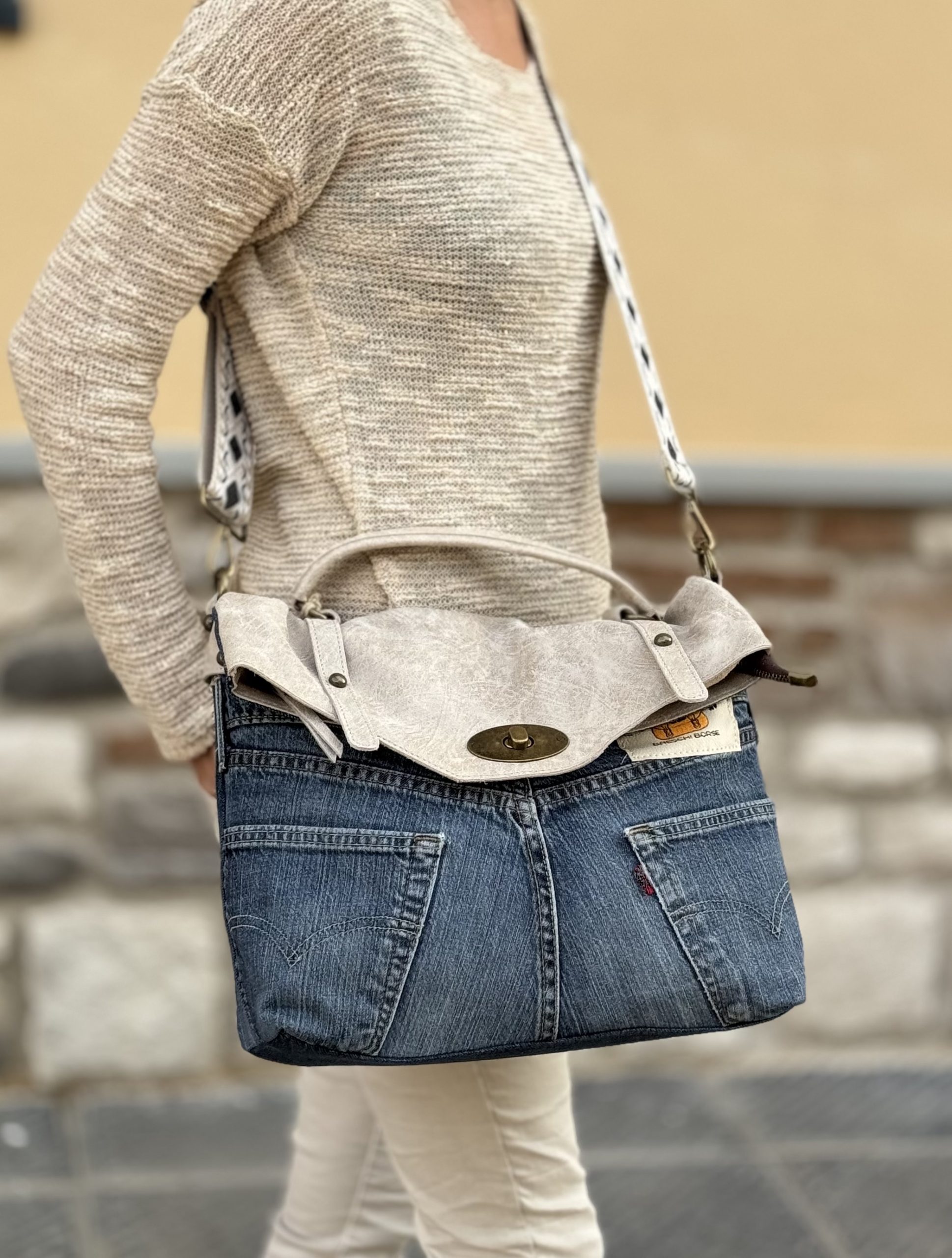 Cartella Jeans Vintage realizzata con Jeans Vintage e Vera Pelle .