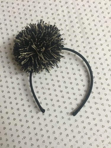 Cerchietto con applicazione pom pom melangiato crema/nero/lurex. Interamente fatto a mano. NON SI EFFETTUANO RESI.