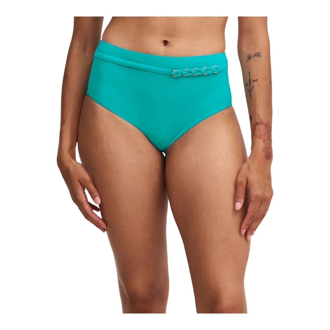 Femminile e iconica la collezione mare Chantelle per tutte le donne Colori brillanti e comfort ineguagliabile per accompagnare le giornate di mare sole e divertimento ed essere sempre unici. Slip a vita alta foderato frontalmente e posteriormente Impreziosito dagli anelli dorati Composizione: 72% poliammide; 28% elastan