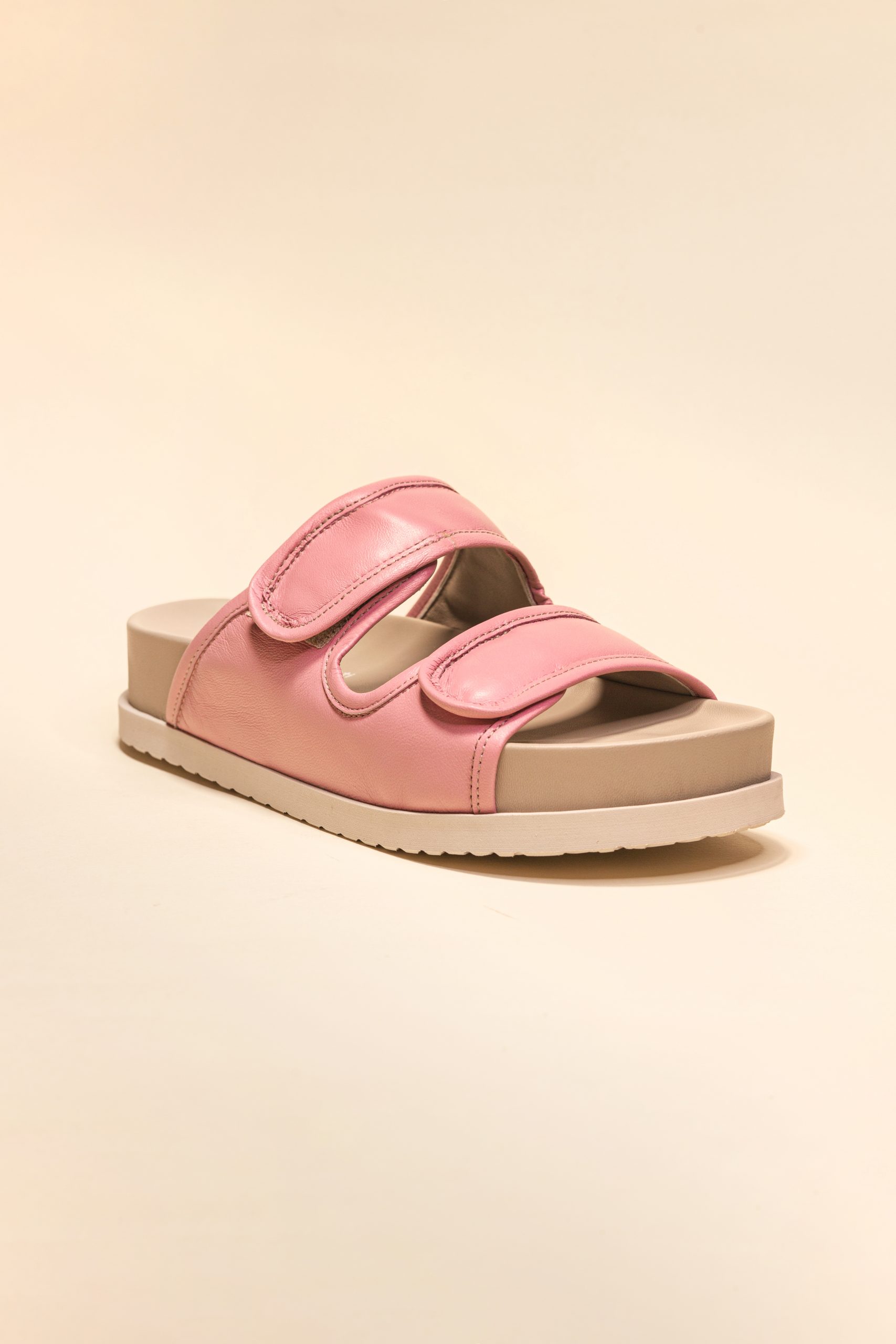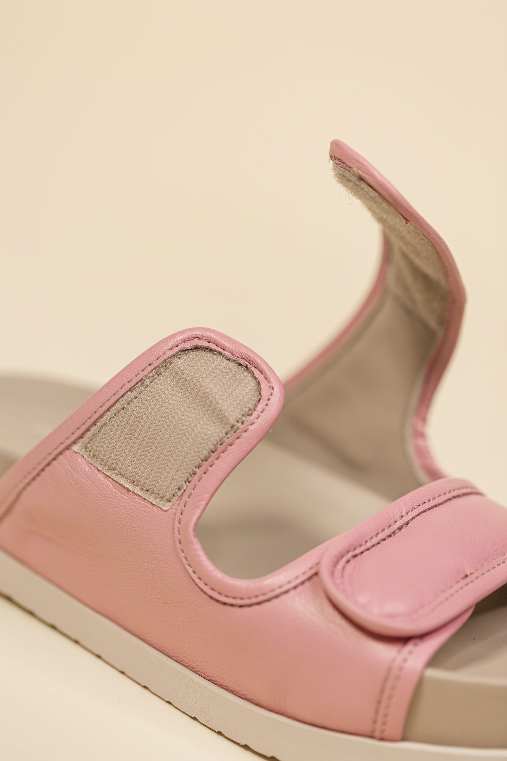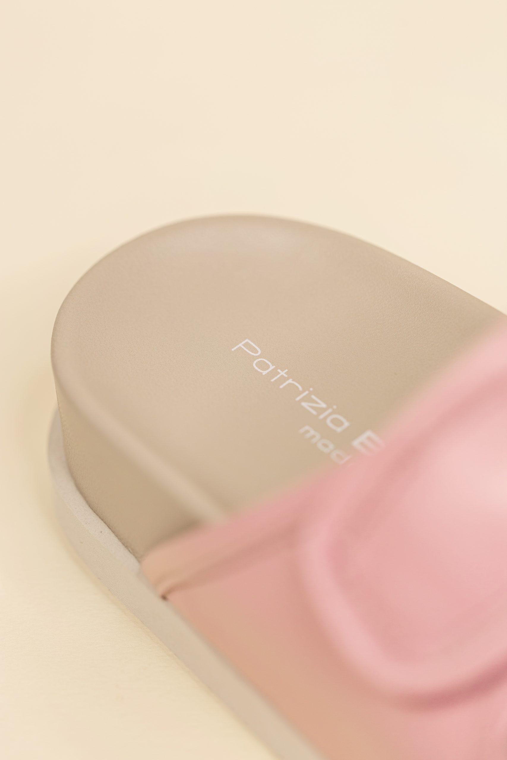 Patrizia Bonfanti Sandalo basso in pelle lucida rosa con suola extralight. Dalla linea moderna e avanguardista, per essere chic senza sforzo e senza compromessi. Vestibilità regolare