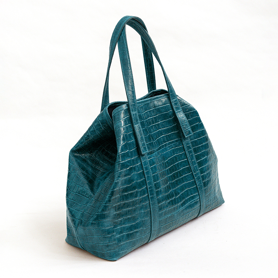 COCCO – Borsa maxi in pelle stampa cocco ottanio