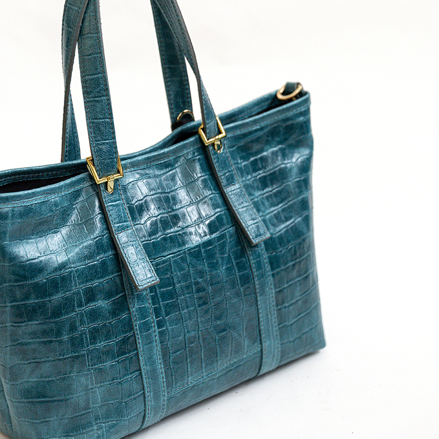 COCCO SMALL – Borsa in pelle stampa cocco ottanio