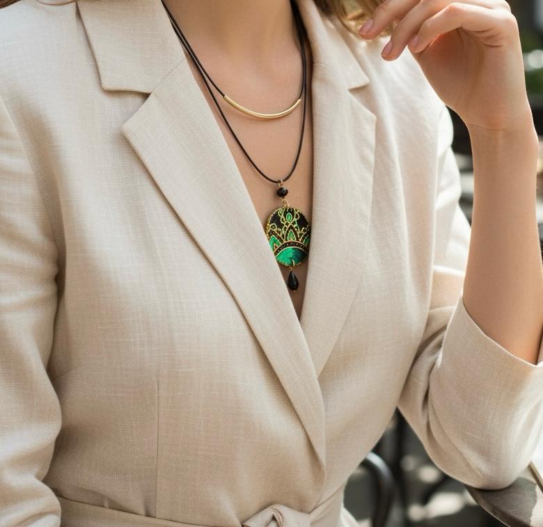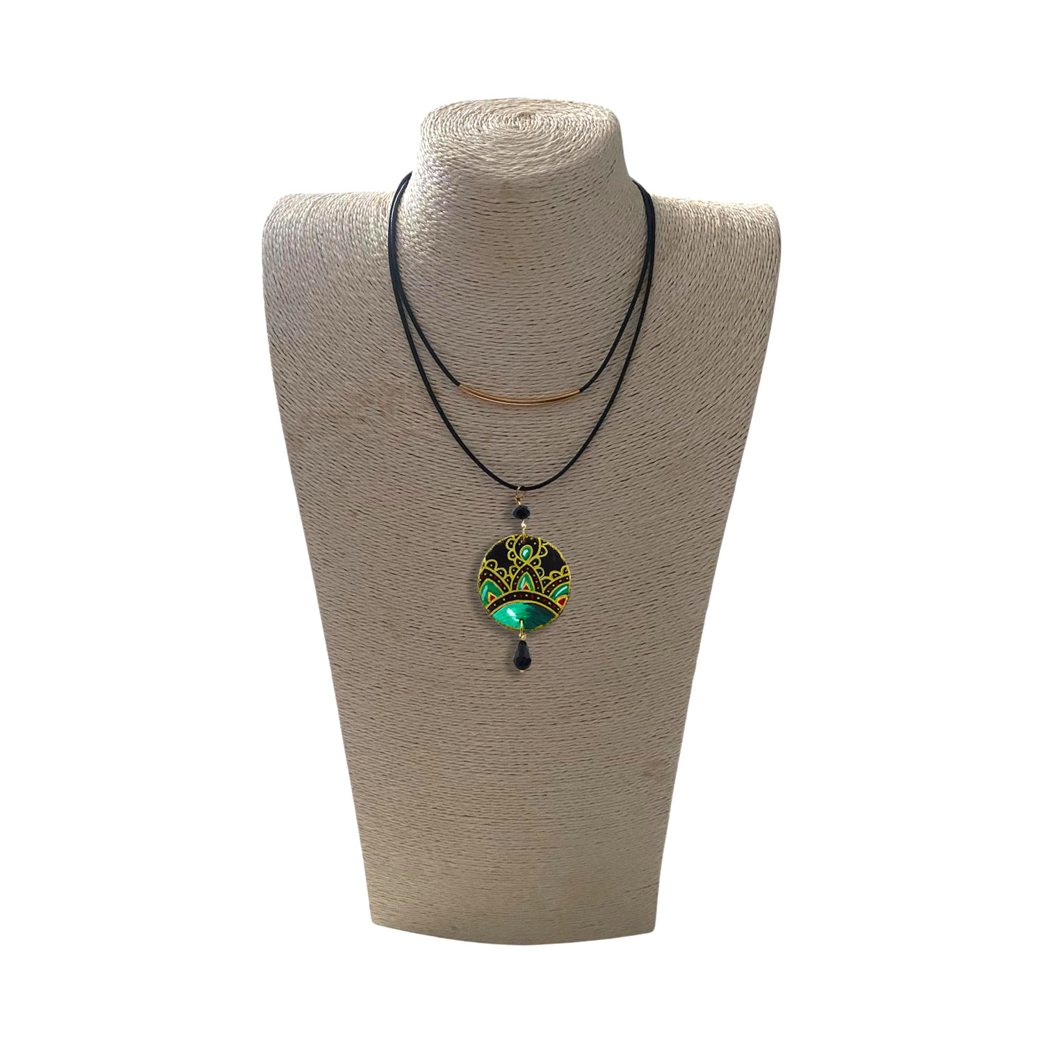 Collana dipinta a mano – Decorazione ceramica di Vietri : Pendente in Legno Tondo Dipinto a Mano, gioiello unico Made in Italy. Un omaggio alla tradizione artistica della ceramica vietrese, reinterpretata e riprodotta a mano su legno, che diventa un’opera d’arte da indossare, trasformando la collana in un accessorio elegante e raffinato, perfetto anche come idea regalo.