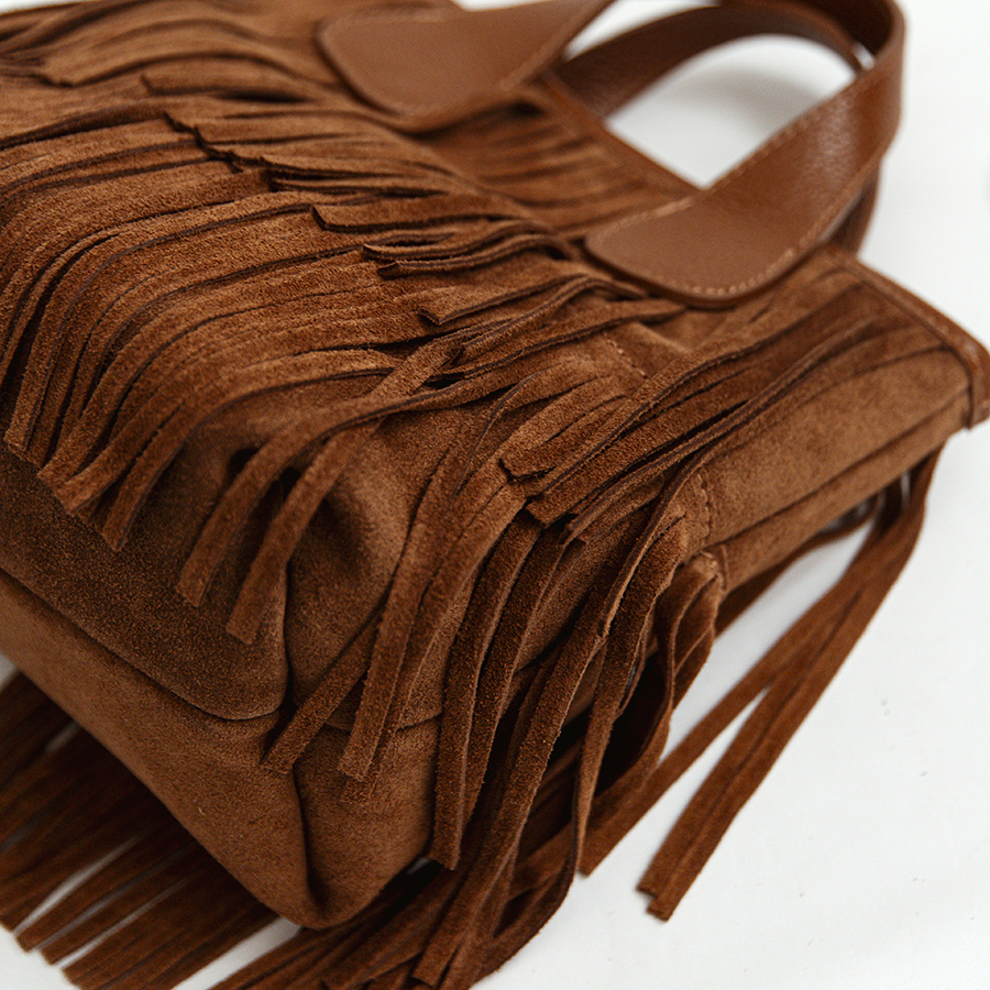 DAKOTA – Tote in camoscio con frange cuoio