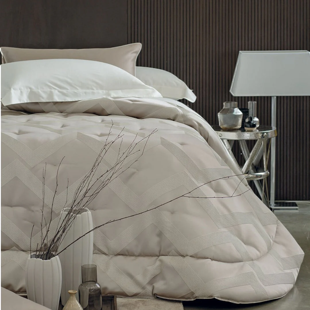 Calda e avvolgente trapunta matrimoniale con disegno jacquard.
