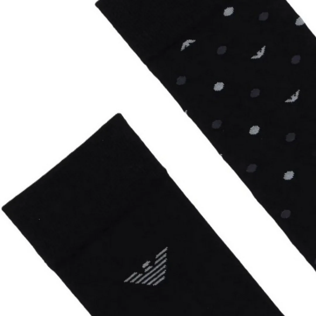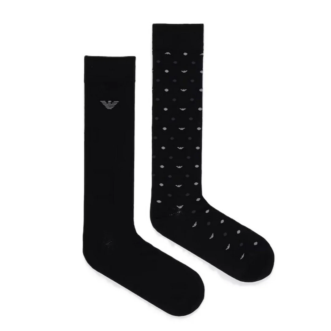 Emporio Armani 2 Pack Calze Lunghe Uomo Allover Eagle Nero EM000545-AF18145MC363