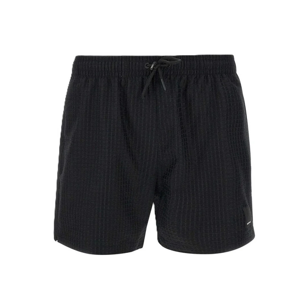 Costume da bagno Emporio Armani in colore nero, caratterizzato da una raffinata trama testurizzata a micro quadretti.