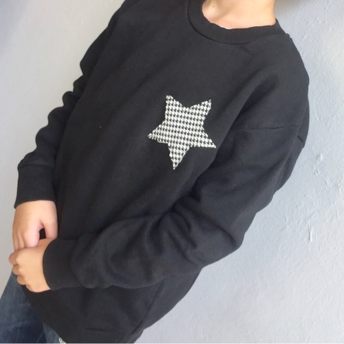 Felpa con applicazione STELLA in tessuto. Colori base disponibili: grigio, nero, cipria. E’ possibile scegliere il tipo di tessuto dell’applicazione specificandolo nelle note. Tessuti disponibili: nero, grigio, cipria, scozzese, pied de poule, oro, argento.