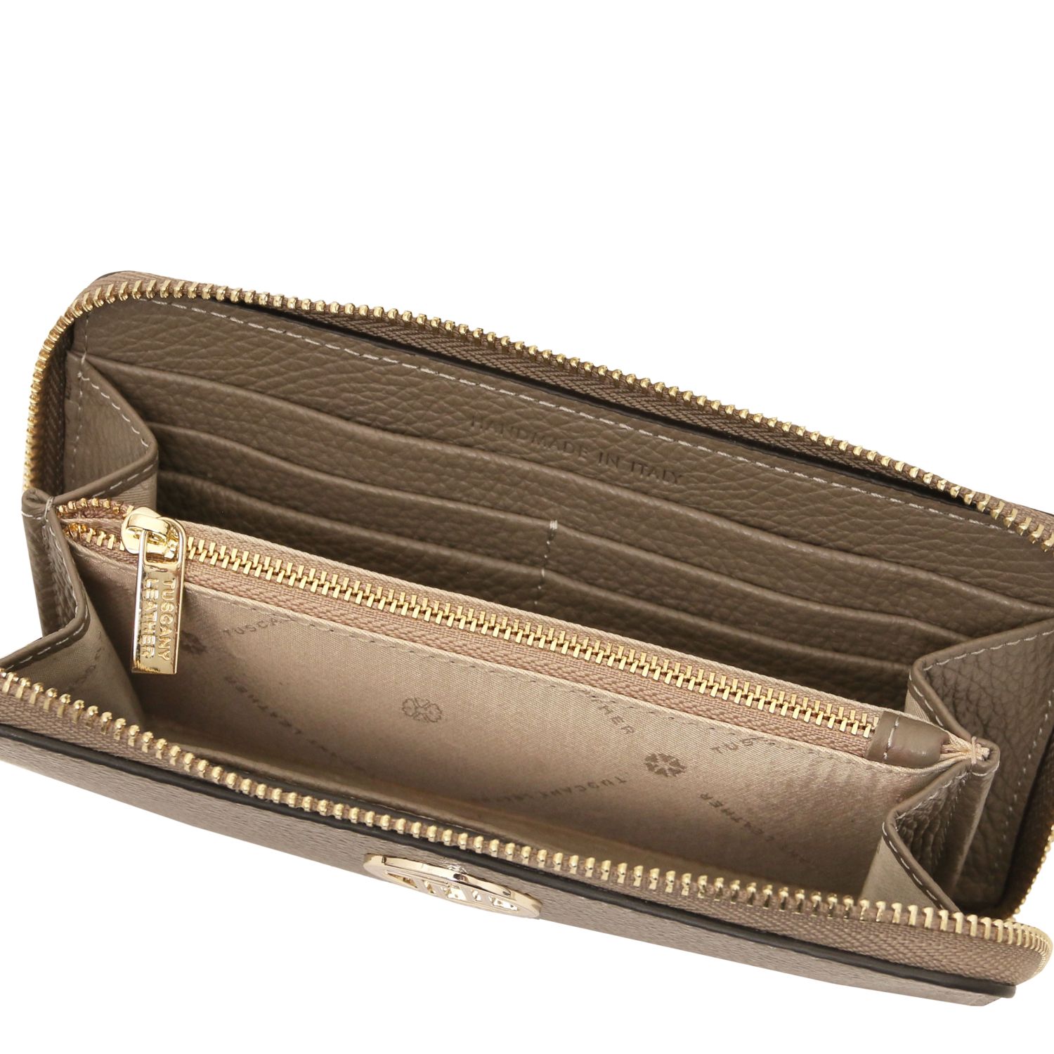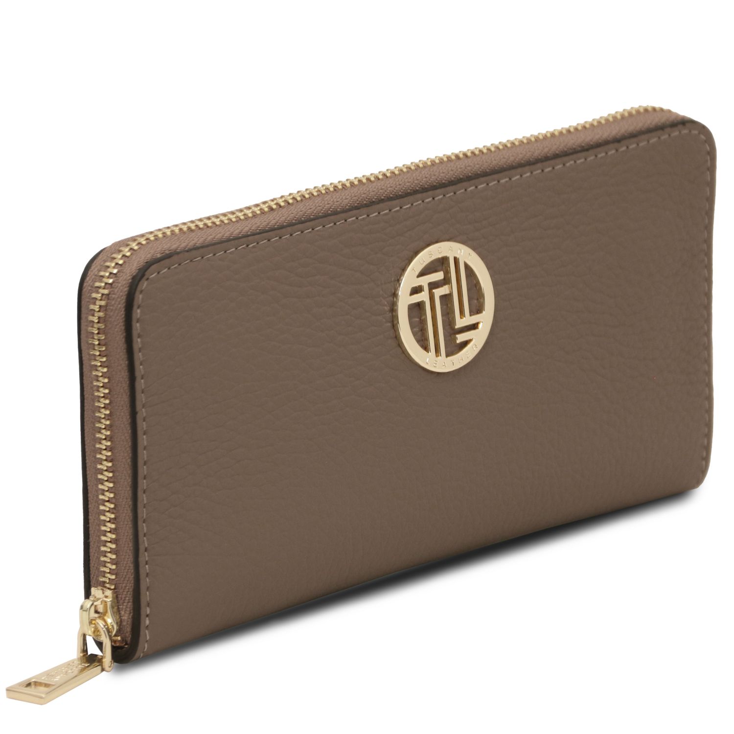 ADA Portafogli in pelle morbida con doppia zip around – Talpa chiaro