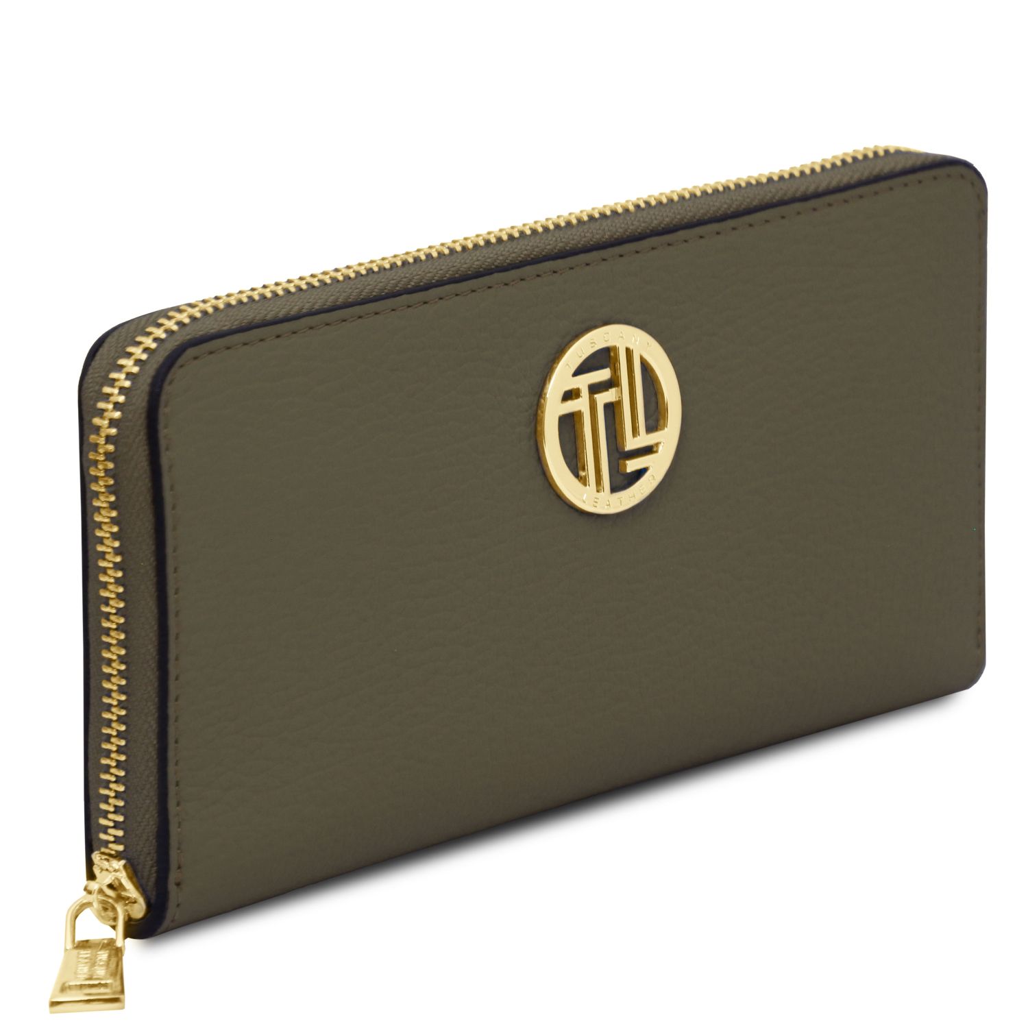ADA Portafogli in pelle morbida con doppia zip around – Talpa chiaro