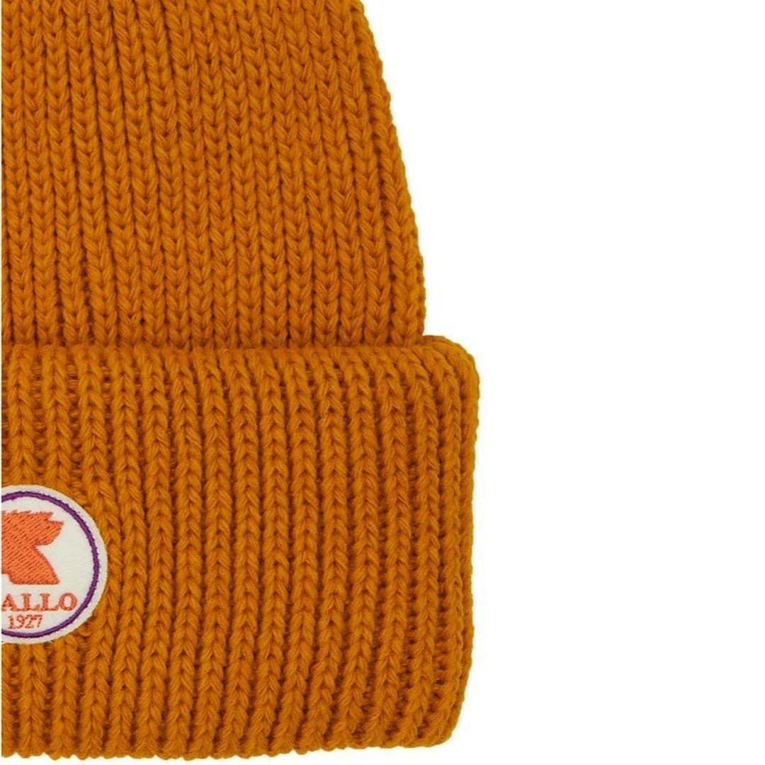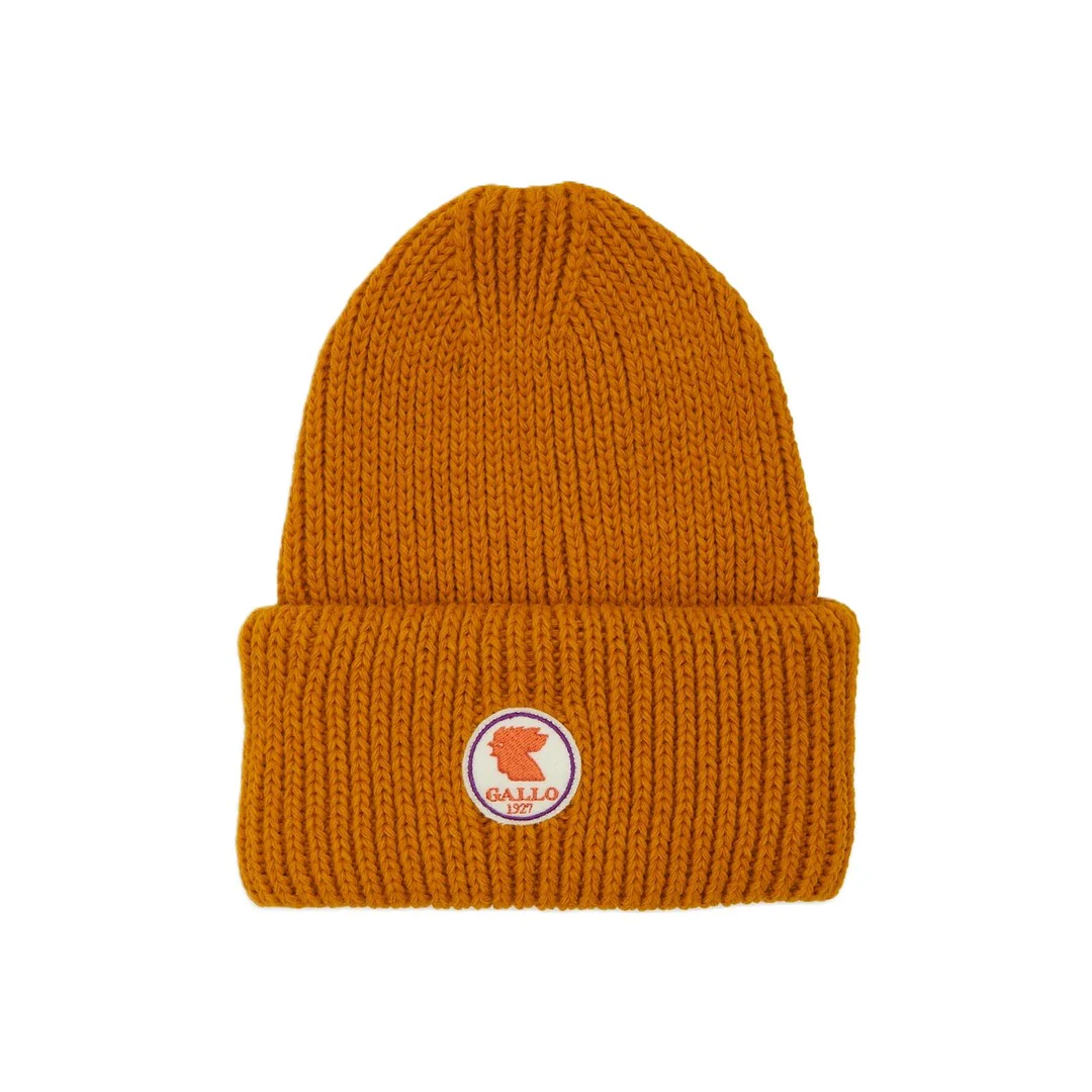 Gallo Berretto Unisex con Risvolto Arancio a Coste Tinta Unita