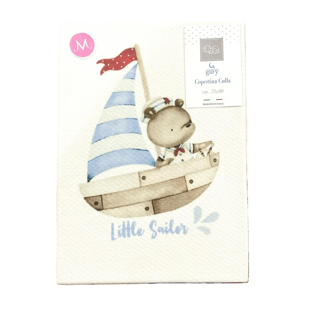 Gary Copertina Neonato 100% cotone tinta unita stampa barca cielo 75×90